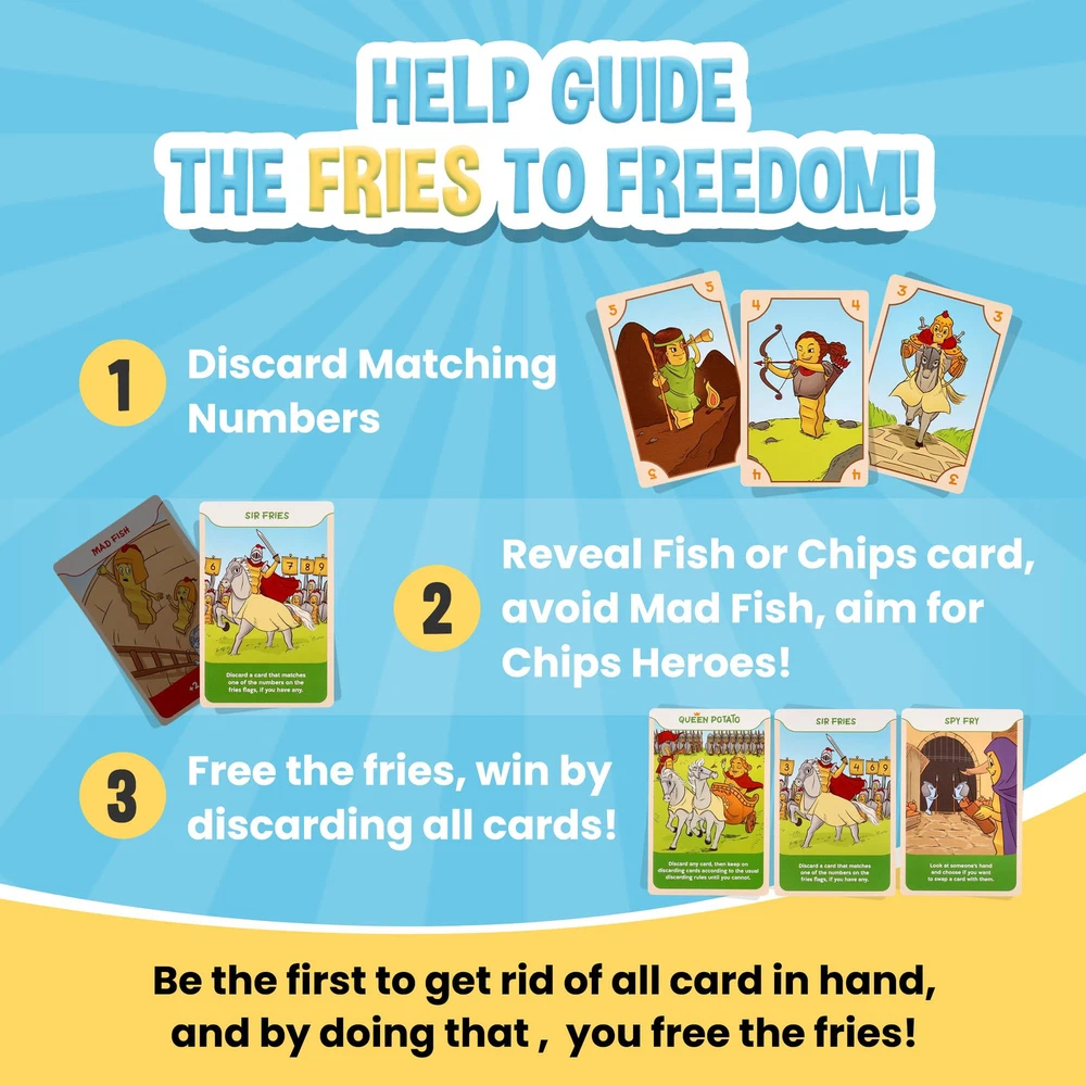 A Daring Rescue Mission - Guide the fries to freedom and be a chip legend! This illustrated family game takes you on an adventure filled with surprises at every turn and never-ending excitement! Stimulates Critical Thinking - Have fun saving the chips while sharpening your mind. This game for children gives them the opportunity to think critically and practice their decision-making skills. Fun Family Games - Play head-to-head or have your whole family join in on the quest! This card game supports to seven players and is perfectly suited for , teens, grown-ups, and seniors alike! Start Playing In Minutes - No need to deal with complicated rules or confusing game mechanics. The card game comes with a set of simple rules, allowing you to start the adventure right away. A Fun-Filled Present - Any would love to receive fun card games as a gift! Our games card set will make a terrific present for a on Christmas, birthdays, and other special occasions.