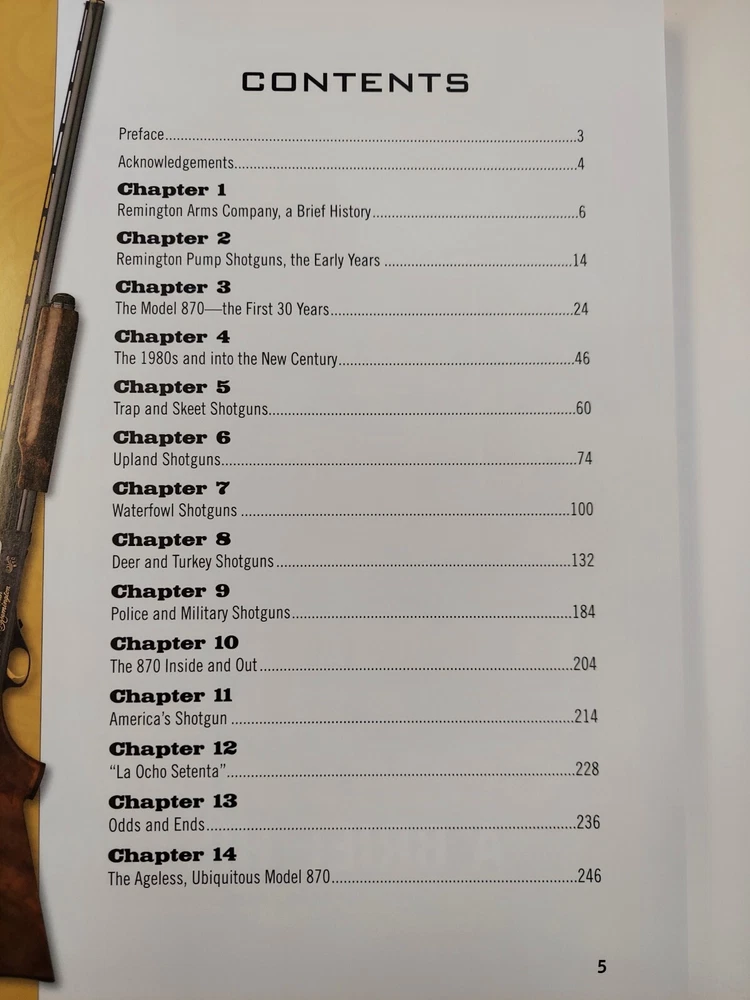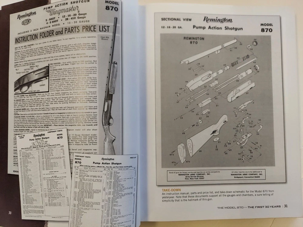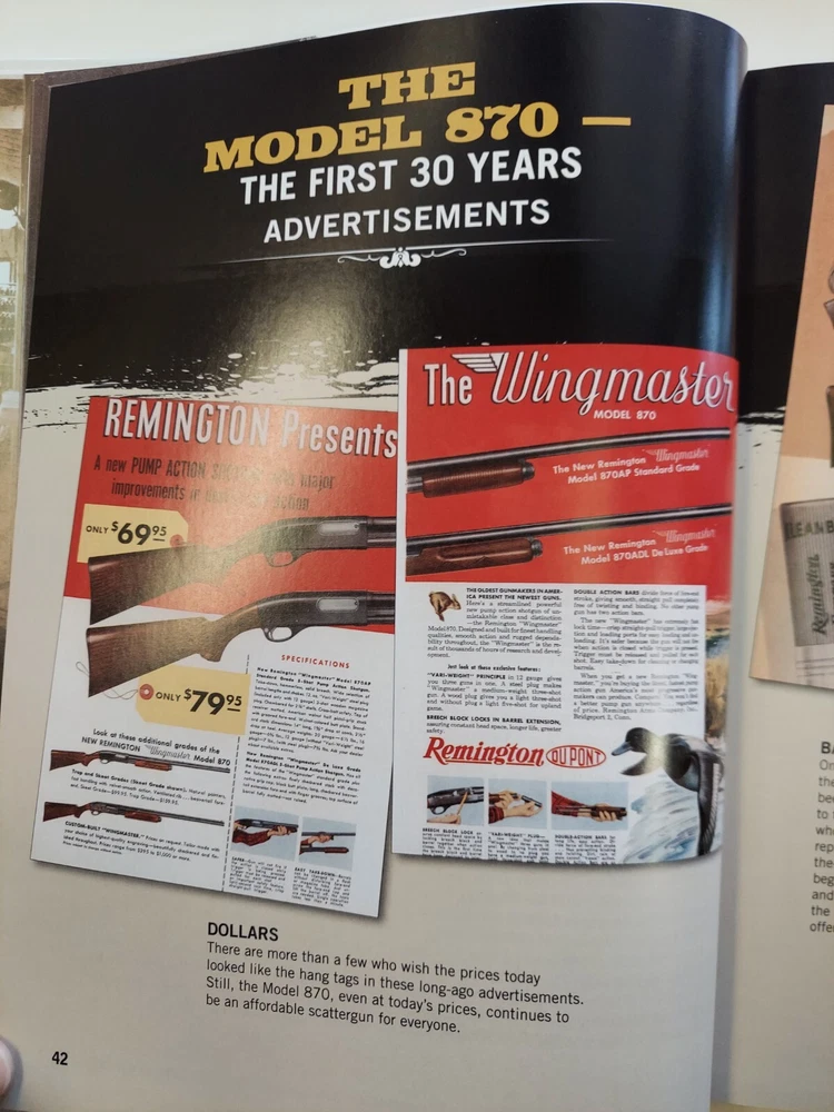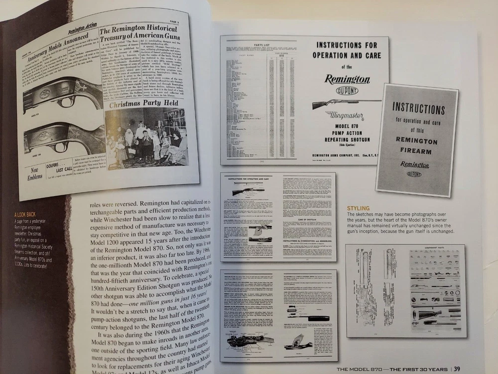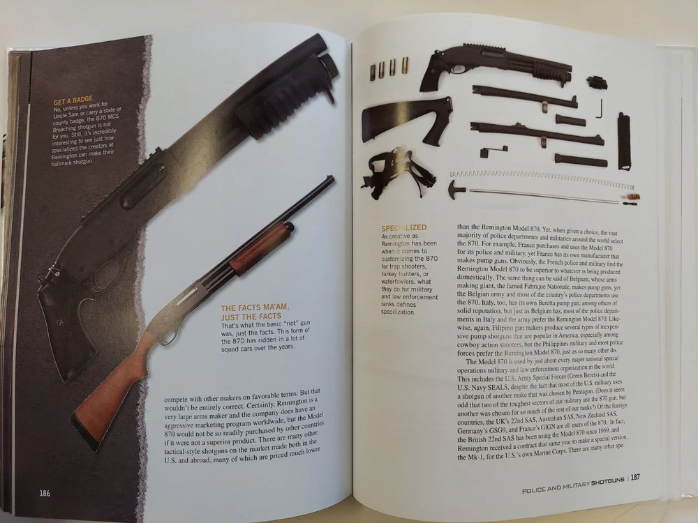 The Gun Digest Book of the Remington 870 by Nick Hahn This is an 8 1/2” X 11 1/8”, 256 page glossy hardcover book. It was not issued with a dustjacket. The book was published in 2012 by F+W Media. The book is profusely illustrated. Many of the illustrations are images of old catalog pages and advertisements. Condition : This is a new copy that has been on display. There is a bump to the lower edge of the front cover and the upper edge of the back cover.