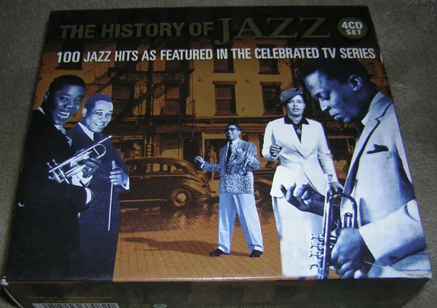 UPC: Does not apply Release Title: The History Of Jazz Format: CD Language: English Genre: Jazz Record Label: Prism Leisure Occasion: New Year Artist: Various Jazz Artists Country/Region of Manufacture: Belgium Style: Big Band/Swing Type: Album Features: Compilation, Four CD Set, Paintings by Arturo Yorke Release Year: 2000 Case Type: Jewel Case: Standard gtin13: Does not apply Instrument: Horn Modified Item: No Subtitle: 100 Jazz Hits As Featured In Celebrated TV Series