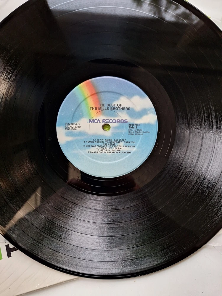 Country/Region of Manufacture:United StatesCase Type:Cardboard SleeveMaterial:VinylInlay Condition:Very Good Plus (VG+)Release Year:1965gtin13:Does not applyFormat:RecordRecord Grading:Very Good Plus (VG+)Seller Notes:“Plays well shrink still on jacket very nice copy”Sleeve Grading:Very Good Plus (VG+)Edition:Best OfRelease Title:The Best of the Mills BrothersUPC:Does not applyLanguage:EnglishType:Double LPRecord Label:MCAArtist:The Mills BrothersGenre:Jazz, PopSpeed:33 RPMRecord Size:12"