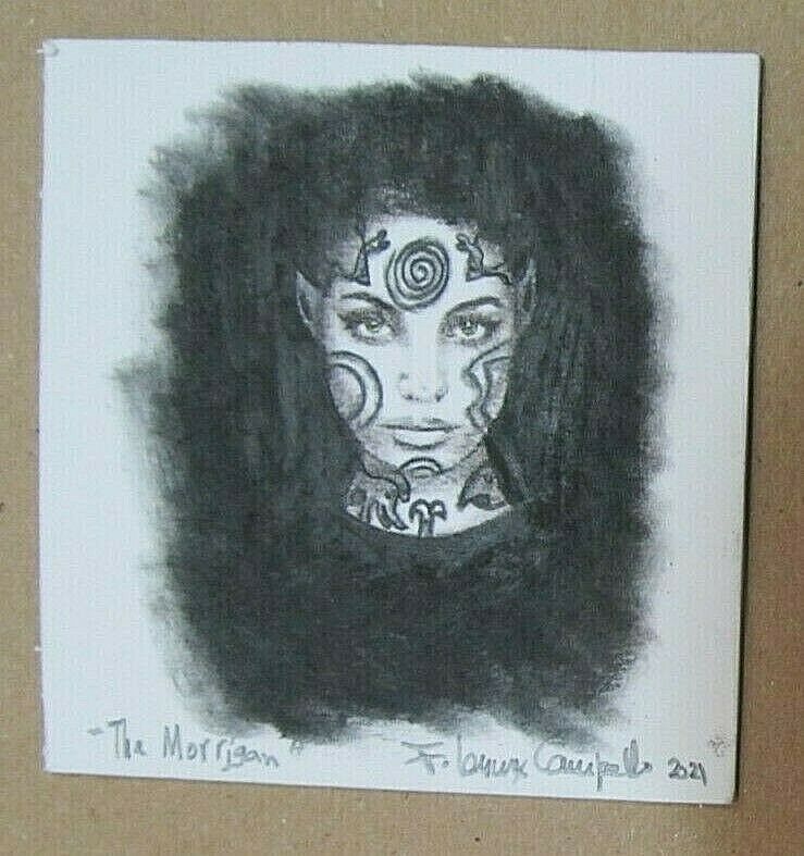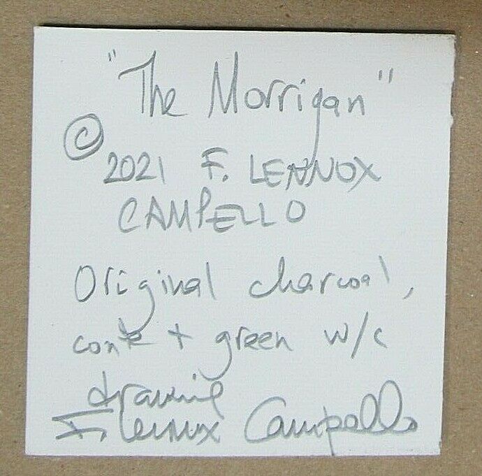 You are bidding on a one of a kind original drawing on paper by listed American artist F. Lennox Campello. The artist appears multiple times in both Who's Who in American Art as well as The Artists' Bluebook and most recently in the major art book 100 Artists of The Mid Atlantic. Most recently, in 2016 he was called "One of the most interesting people of Washington, DC" by the Washington City Paper. "The Morrigan" is an original 2021 charcoal and conte drawing on 300 weight pH-balanced, acid free paper. It measures 4.25 x 4.25 inches and it is signed and dated in pencil recto on the lower front margin and on verso. It is framed to full museum standards in a minimalist wood frame to a 5x7 inch size. It will be shipped very well packed. He has exhibited widely in many galleries, museums and art fairs in Europe, Latin America and the US and is in the collection of several "Top 100" art collectors. We recommend that you Google this artist so that you can note his deep presence on the American art scene. In addition to numerous galleries, his work has been exhibited at the McManus Museum in Scotland, the Brusque Museum in Brazil, the San Bernardino County Art Museum in California, the Musee des Duncan in France, the Frick Museum in Ohio, the Meadows Museum of Art in Shreveport, Louisiana, the Hunter Museum in Tennessee, the Sacramento Fine Arts Center in California, the Popov Museum in Russia, the Rufino Tamayo Museum in Mexico City, the Rock Springs Art Center in Wyoming, the Museum of Contemporary Art and the Katzen Museum in Washington, DC and the Museum of Contemporary Art in Boulder, Colorado. A while back, his work was hand picked by renowned American art collector Mera Rubell (considered by many to be the top American art collector in the world) for her epic "36 Studios in 36 Hours" exhibition at the Katzen Museum at American University. In 2016 he was selected by The Washington City Paper as "one of the most interesting people of Washington, DC." WHAT THE CRITICS HAVE SAID ABOUT F. LENNOX CAMPELLO’S ART … he manages to find a delicate balance between the black charcoal and cream-colored paper resulting in a grainy, film-noir effect, making his subjects… seem tough but vulnerable, like a flowering plant in a sexual wasteland. Ferdinand Protzman, Washington Post The artist illuminates this obscure corner of history with black charcoal drawings sketched on gleaming white paper. Each one if a gem, suffused with the artist’s’ passion for these [Pictish] peoples. Joanna Shaw-Eagle, Washington Times One of Washington’s best…. NBC 4 Washington without Lenny is like a martini without olives…. Jack Rasmussen, Director, American University  Museum Campello has used not only his considerable skills as a draughtsman, but has interpolated from the only sources that remain from Pict culture. John Blee, Georgetowner His use of charcoal sets him apart, enabling Campello to build a strong contrast in his piece…It's clear and understandable art. Rick Muirragui, Potomac News Dramatic effects of light and shadow… Cheryl Allison, Bowie-Blade News Although small, the tension between the mass and the highlighted areas give the impression of a monumental subject. Lucy Blankenstein, KOAN Art Newsletter Campello's recently closed solo show demonstrated what a passion-filled artist and a unique vision can create. J.T. Kirkland, Thinking About Art Campello's drawings… can be quite thought-provoking through the manner in which he chooses to depict religious, mythological or cultural icons- many of which we are quite familiary with. Alexandra Silverthorne, Solarize This [its a] haphazard, unedited, and overly sentimental… group show… Still, some works stand out. F. Lennox Campello's irreverent drawings from the "Unknown Events in The Wizard of Oz Saga" include "How Dorothy Really Killed the Wicked Witch of the West" - she stuffed the old bat's head in that bucket of water. Cate McQuaid, Boston Globe The artwork comes with a Certificate of Authenticity and Provenance and a copy of the artist's art resume. About the Artist: One of the Mid Atlantic area’s best-known arts personalities, F. Lennox Campello studied art at the University of Washington School of Art in Seattle, under Professors Norman Lundin, Alden Mason, Jacob Lawrence, Everet DuPen and others. Although he graduated from Washington in 1981, the artist started to sell his work professionally in 1977, when he became one of the regular exhibiting artists at Seattle's world famous Pike Place Market. His art career has grown prodigiously since those days, and several of his "Pike Place Market" originals have since sold at auction for thousands of dollars, both in the US and Europe. In that same year that he graduated from Washington, he won the William Whipple National Art Competition First Prize for Printmaking, as well as the Silver Medal at the Ligoa Duncan International Art Competition in Paris and the French "Prix de Peinture de Raymond Duncan," also in Paris. Commissioned as an Ensign in the US Navy in 1981, the artist was transferred to Spain, where he worked on a series of landscapes of Andalusia which now hang in over fifty private collections in Spain, Portugal and the United States.  In 1985 he returned to the United States, living in Monterey, California (while pursuing a Masters Degree) and later to Bowie, Maryland. During this time he returned to figurative drawings, as well as delivering illustrations for magazines and periodicals. In 1989 Campello moved to Scotland, where he lived in a 307 year old farmhouse at the foothills of the Highlands near the ancient Pictish village of Brechin. The rugged character of the Scottish land and his discovery of the mezzotints of David Waterson, a mid-century Scottish printmaker, revived his previous interest in landscape, and for the next three years he produced over three hundred watercolors of Scotland. This work earned him the First Prize in watercolors at the 42nd Annual I
