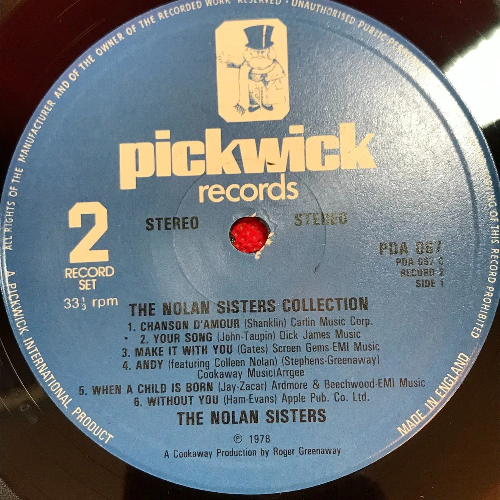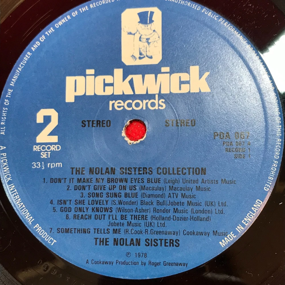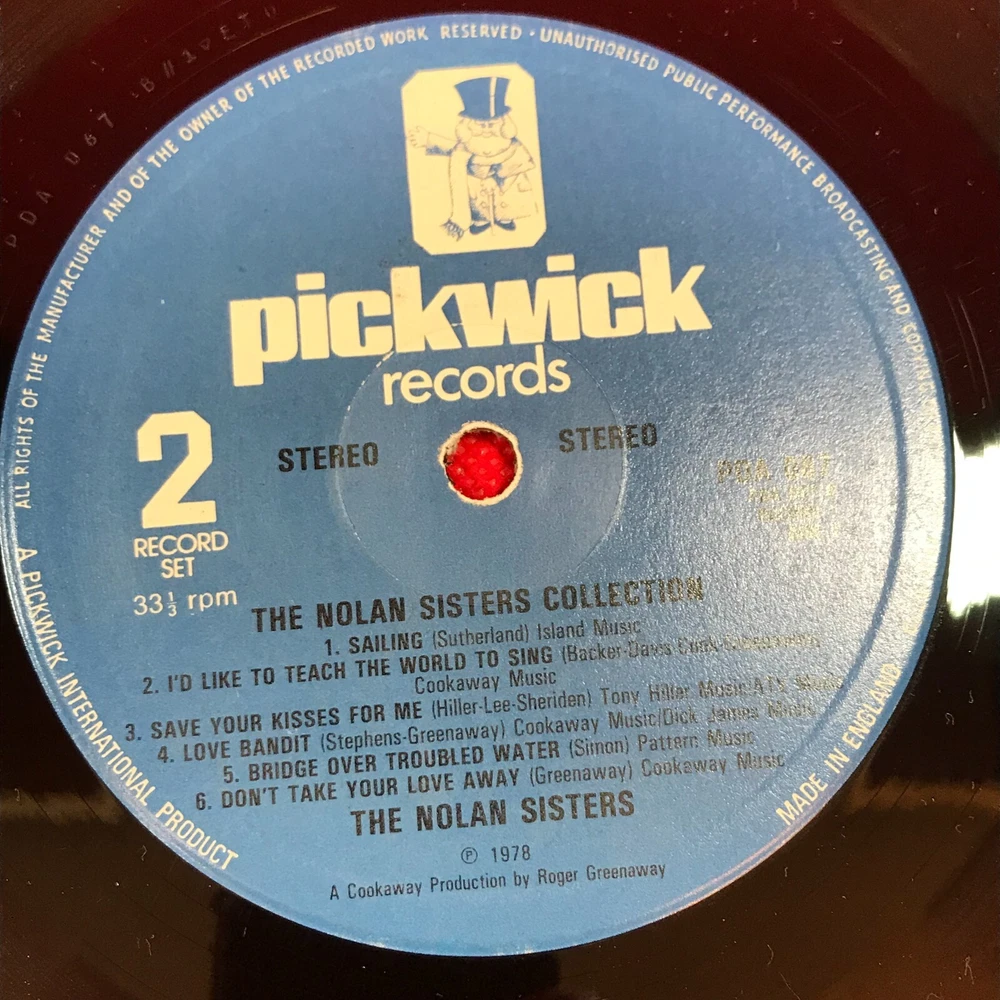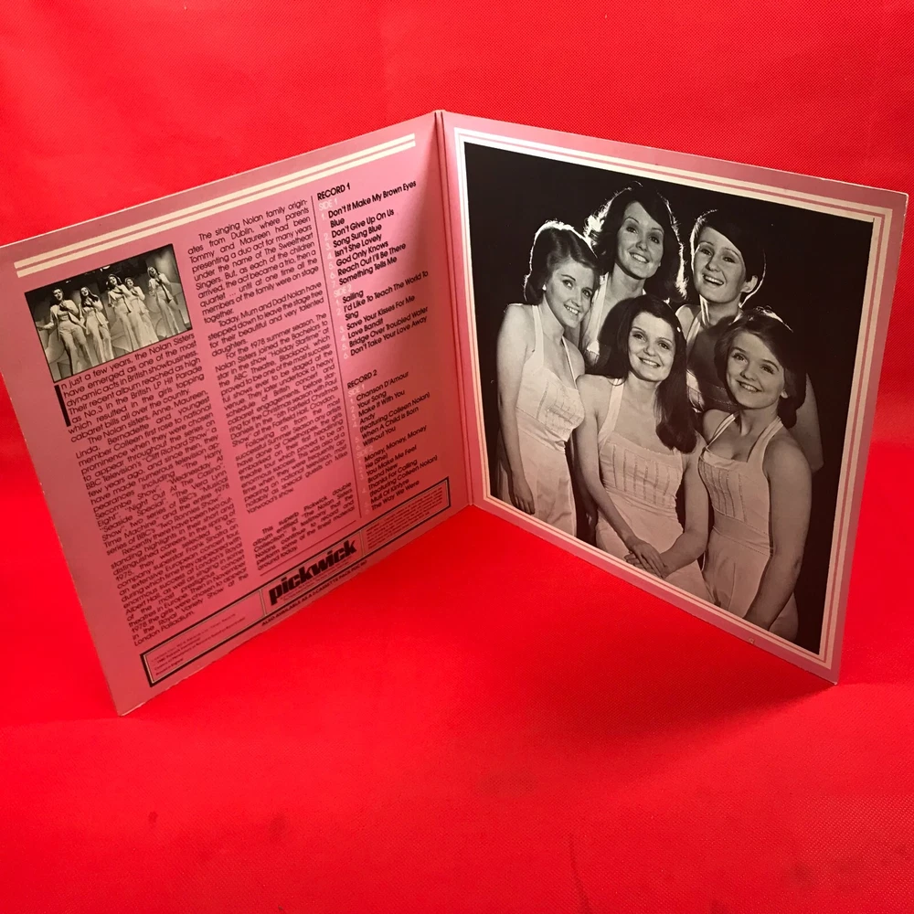 THE NOLANS The Nolan Sisters Collection - 1980 UK Double Vinyl LP - Pickwick Records PDA 067 Don't It Make My Brown Eyes Blue Don't Give Up On Us Song Sung Blue Isn't She Lovely God Only Knows Reach Out I'll Be There Something Tells Me Sailing I'd Like To Teach The World To Sing Save Your Kisses For Me Love Bandit Bridge Over Troubled Water Don't Take Your Love Away Chanson D'Amour Your Song Make It With You Andy When A Child Is Born Without You Money, Money, Money He (She) You Make Me Feel Brand New Thanks For Calling Mull Of Kintyre The Way We Where . Record Condition : Excellent Cover : Minor shelfwear (see photo) Please check out our other items !