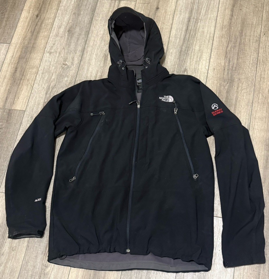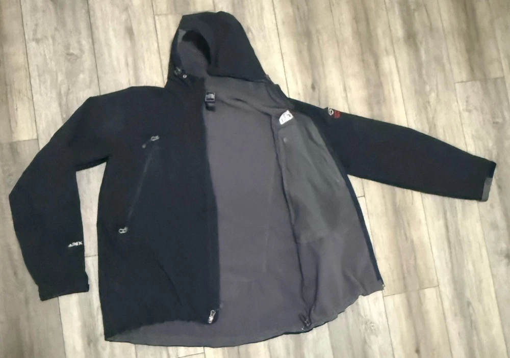 The North Face Apex Summit Series full-zip hooded jacket color black men’s size Large 23X28 inches pre-owned in good condition