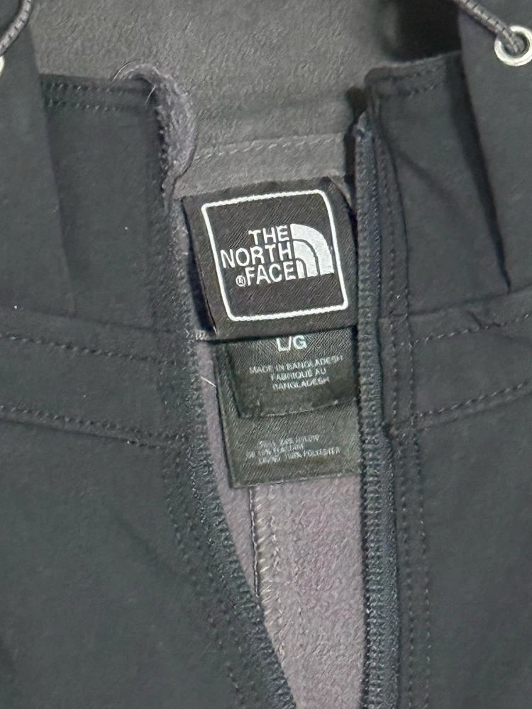 Color: Black Garment Care: Machine Washable Size: L Vintage: No Jacket/Coat Length: Mid-Length Size Type: Regular Model: The North Face Apex Bionic Insulation Material: Polyester Pattern: Solid Personalize: No Closure: Zip Occasion: Casual, Travel Outer Shell Material: Polyester Fabric Type: Softshell Collar Style: Stand-Up Features: Hooded Product Line: The North Face Apex Department: Men Handmade: No Type: Jacket Performance/Activity: Hiking, Walking Lining Material: Polyester Brand: The North Face Accents: Logo Style: Soft Shell Warmth Weight: 300 Theme: Outdoor Season: Fall, Spring, Winter Fit: Regular Country of Origin: China