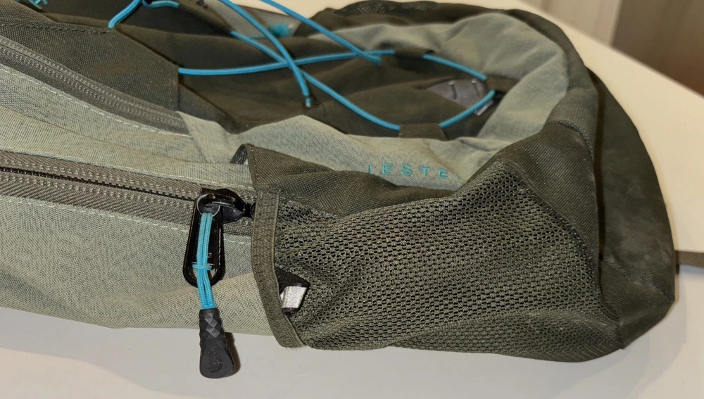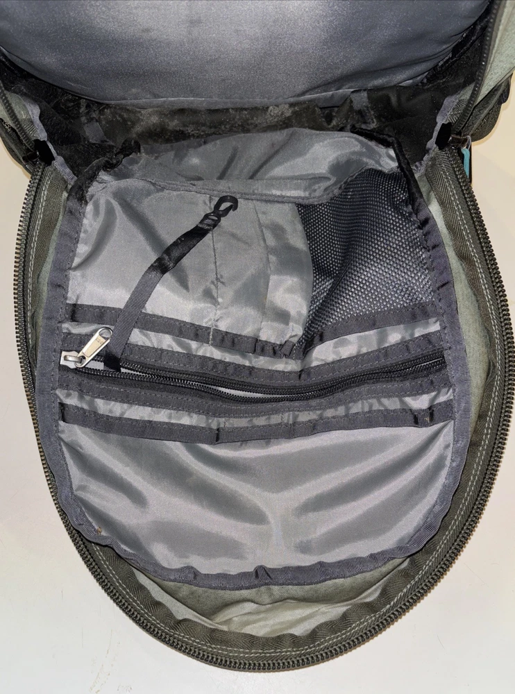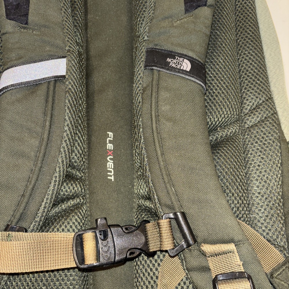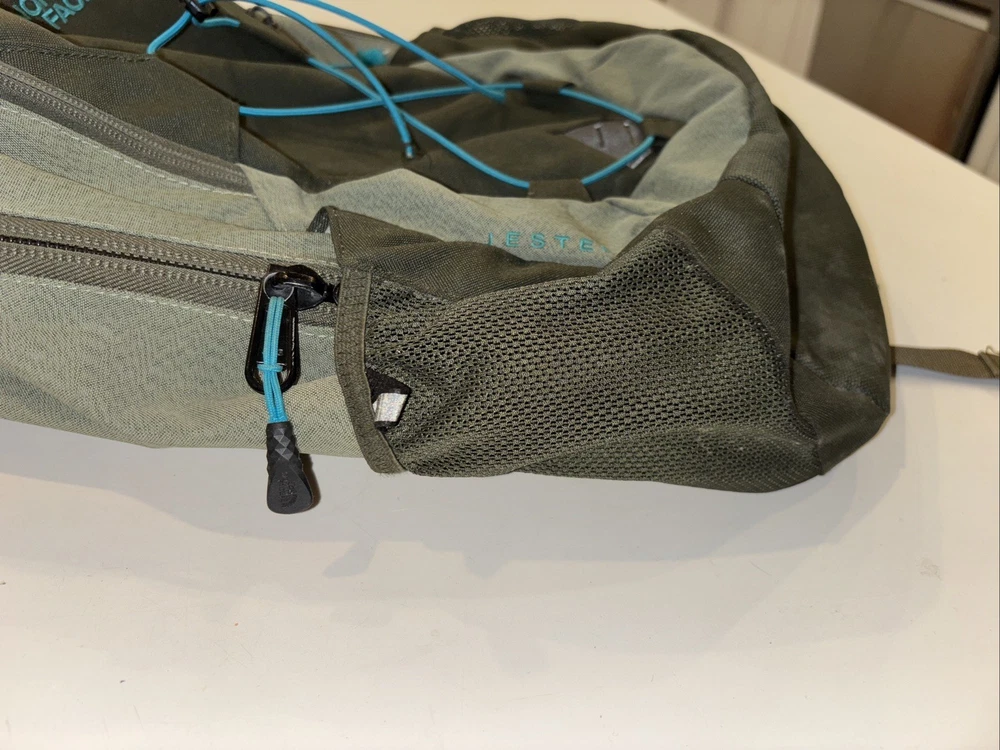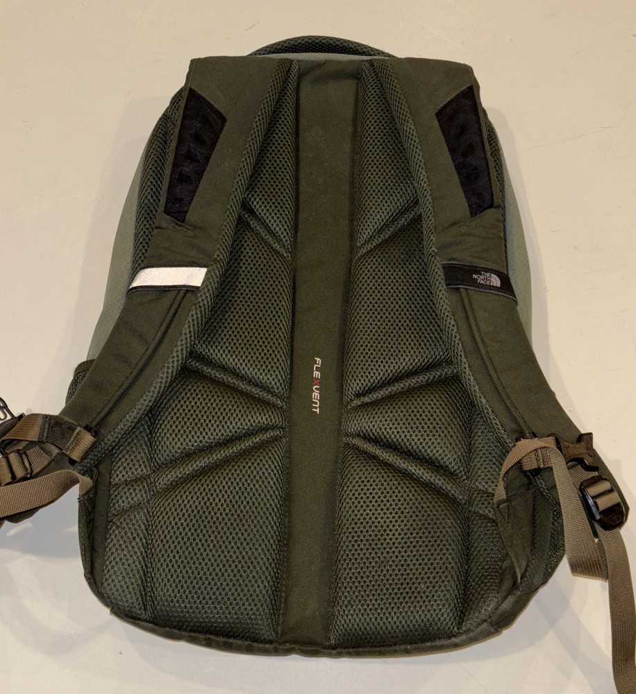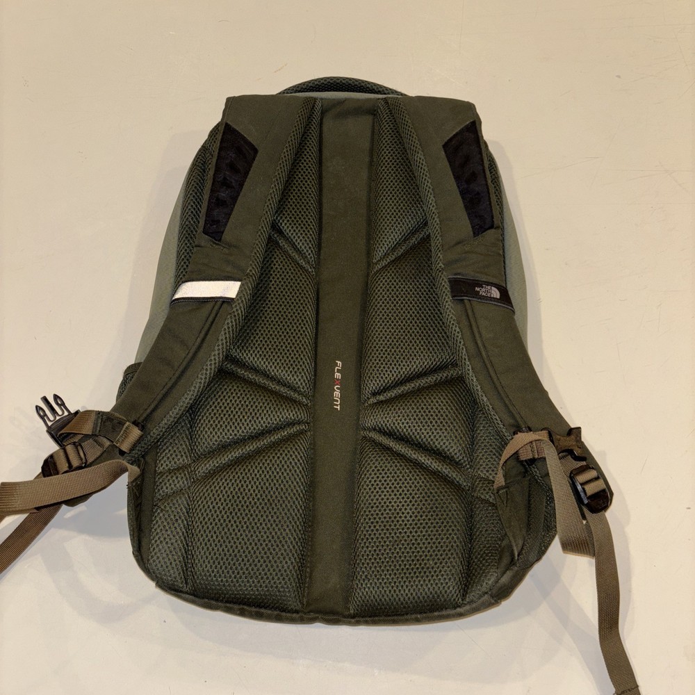 The North Face Vintage Basic Logo Jester Backpack in Olive Green/Teal is a medium-sized shoulder bag suitable for unisex adults. Made of durable polyester material with a nylon frame, this backpack features a zip closure and a divider system with two compartments and more than 8 pockets. It also includes a laptop compartment, padded straps, and external pockets for added convenience. Perfect for backpacking activities, this lightweight backpack is easy to clean with a damp cloth and is a stylish and practical choice for outdoor adventures.