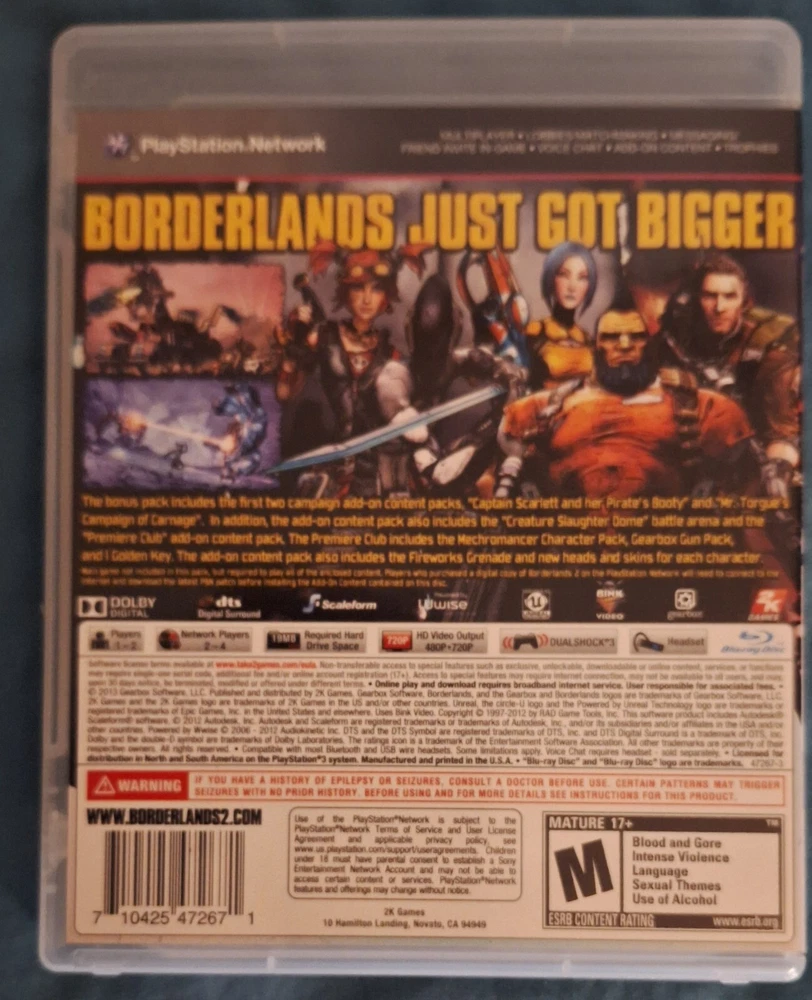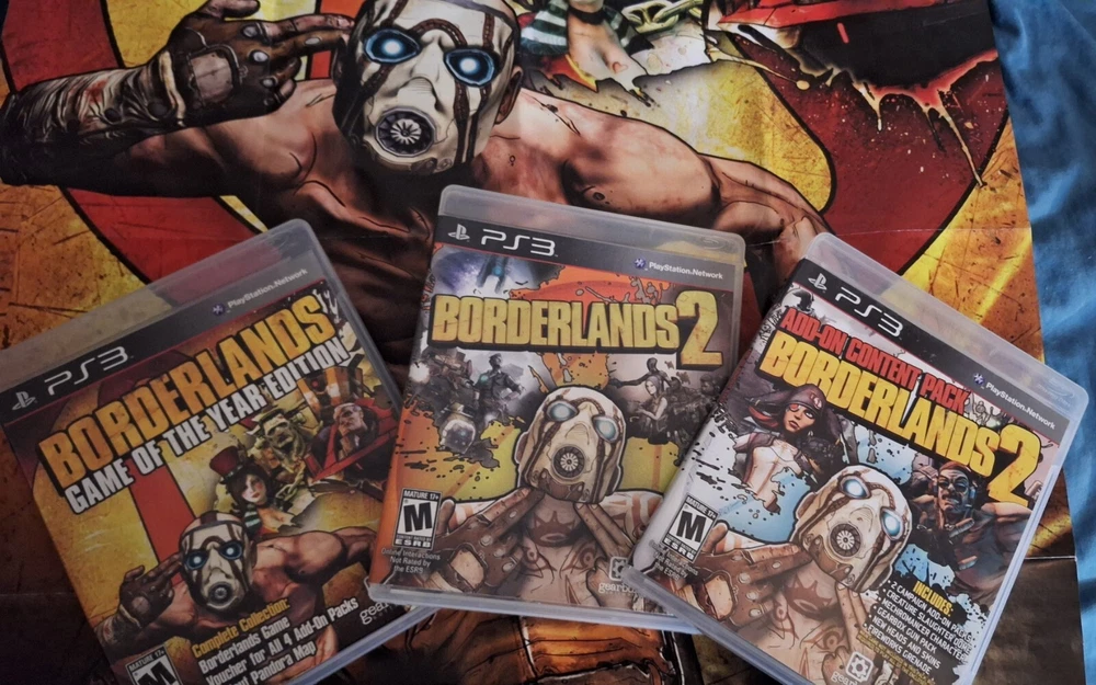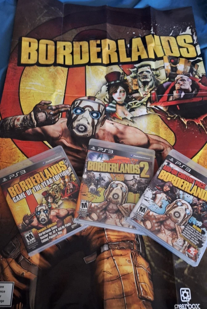 Before there was all this rocketing around in space there was... PANDORA! Immerse yourself in all the madcap looter-shooter action you can handle with the PS3 versions of Borderlands 1 and 2, and the DLC add on content. All confirmed working, all codes present, and a poster/map of pandora to boot. Three discs included, in cases, with manuals, collector's items, DLC code.