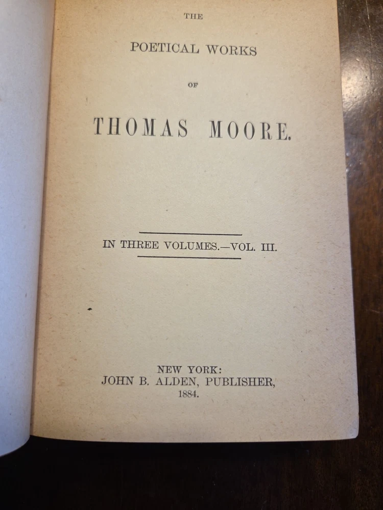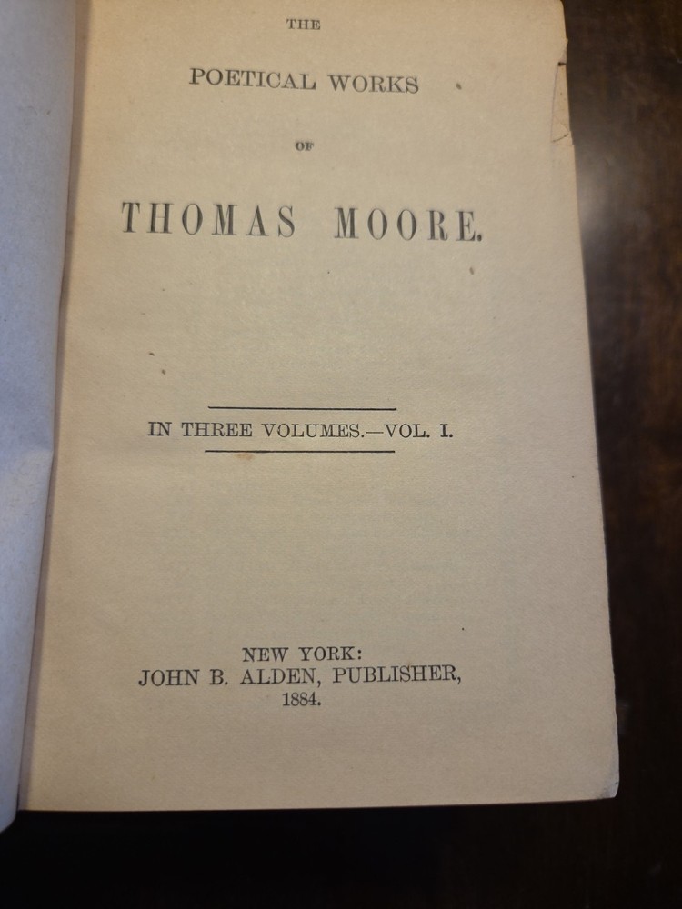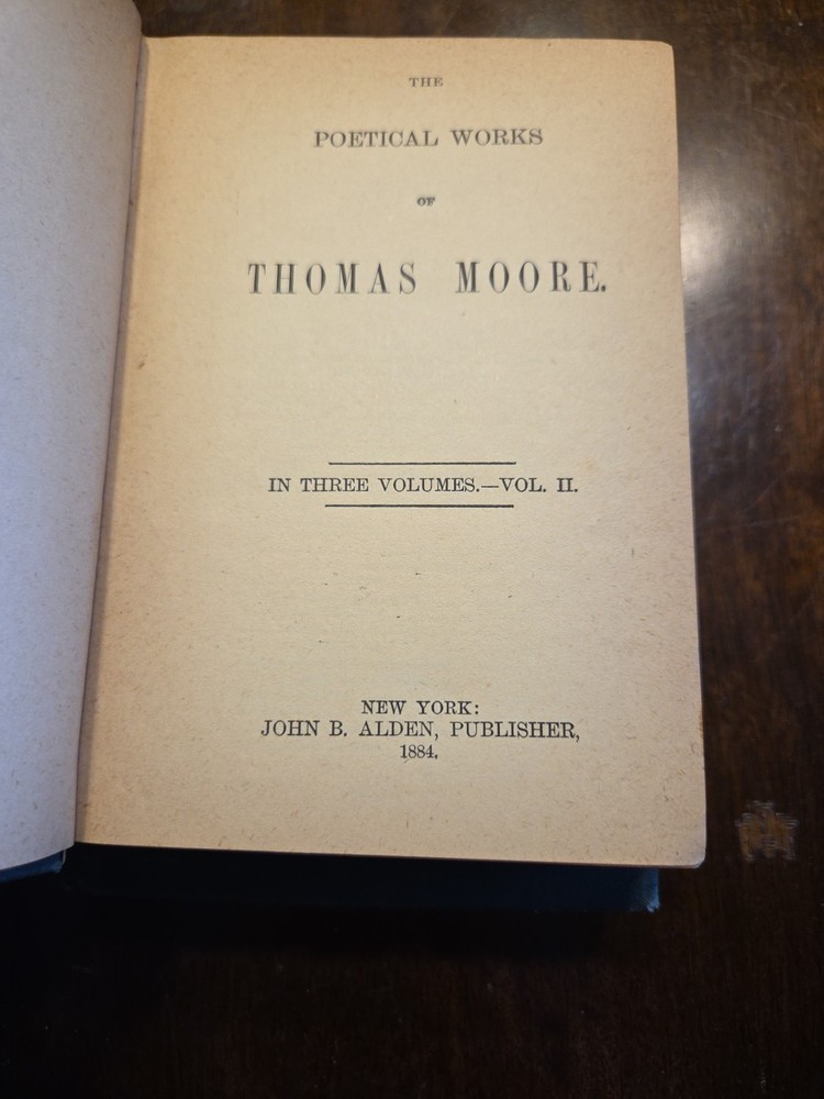 This product is a three-volume set of Thomas Moore's poetical works, originally published in 1884. The hardcover books are in English and considered first editions. The collection is focused on poetry, making it a valuable and collectible item for fans of literature, especially those interested in the works of Thomas Moore.