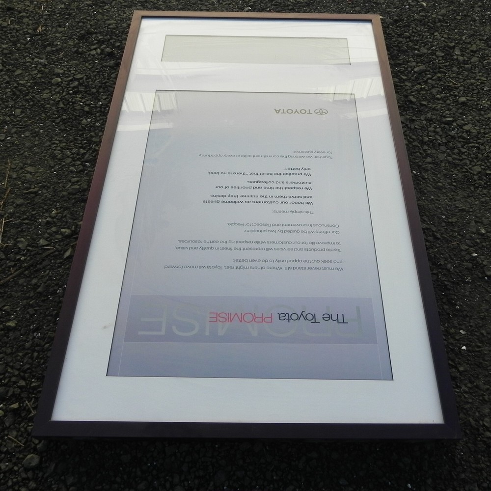 TOYOTA DIMOND DELIVERY TOYOTA DEALERSHIP SIGN FRAMED TOYOTA POLICY 37.5"x25.5"