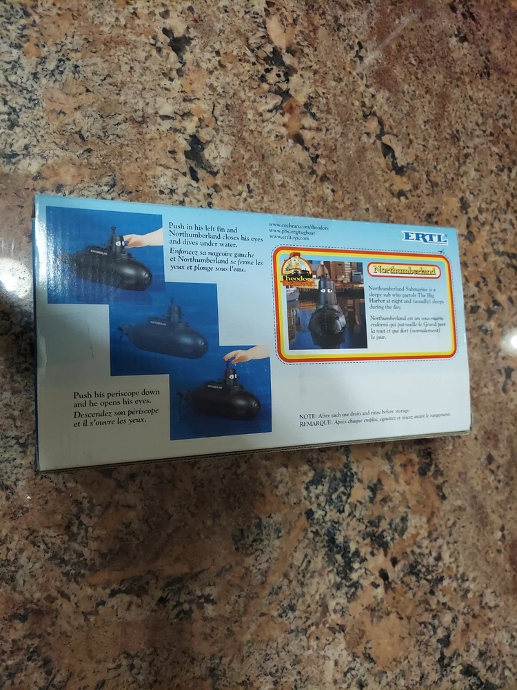 You are BUYING a THEODORE TUGBOAT " NORTHUMBERLAND " BATH TOY made by ERTL. It is made in 1989 and it is mint in package PLEASE LOOK AT MY OTHER AUCTIONS AND MORE + THEODORE TUGBOAT AND MY EBAY STORE , ZOEY'S PLACE ! On Nov-24-02 at 10:34:02 PST, seller added the following information: Pay me securely with any major credit card through PayPal!