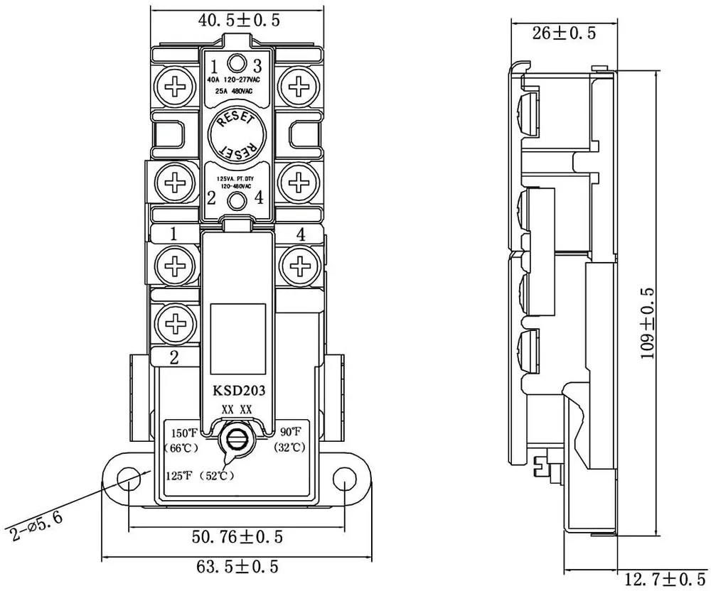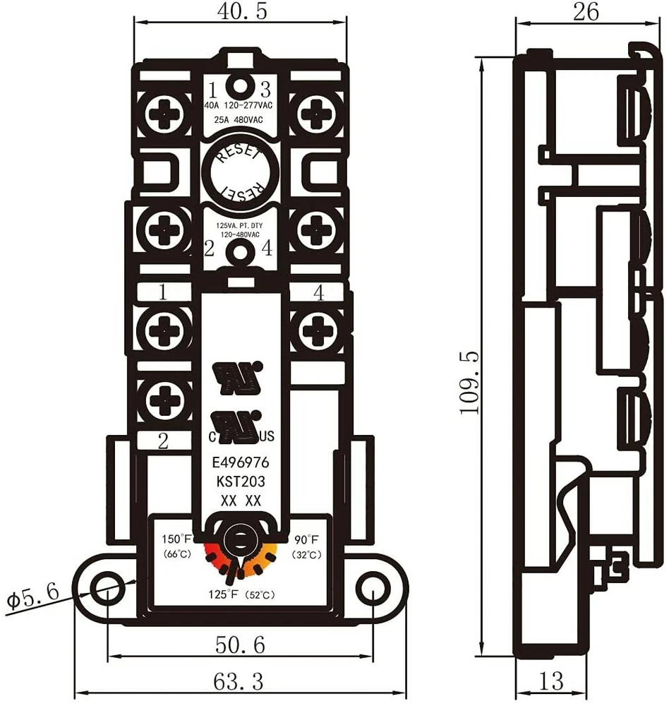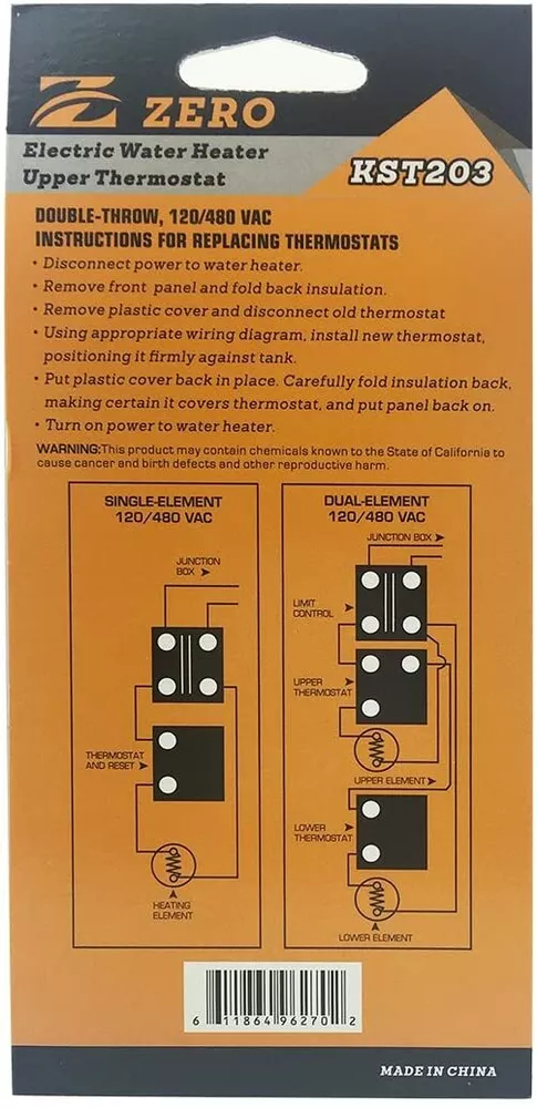 KST203 Upper Element Thermostat for Dual Element Heaters, non-simultaneous, Therm-O-Disk Type Interchangeable with APCOM type, Fits most Brands with Double Heating Elements Tank, UL Listed Single throw, 120/480 VAC,for single element tanks Energy saving range setting Built in safety switch to prevent overheating Cross-reference:59T SPST+66T All thermostats are adjustable,UL certification