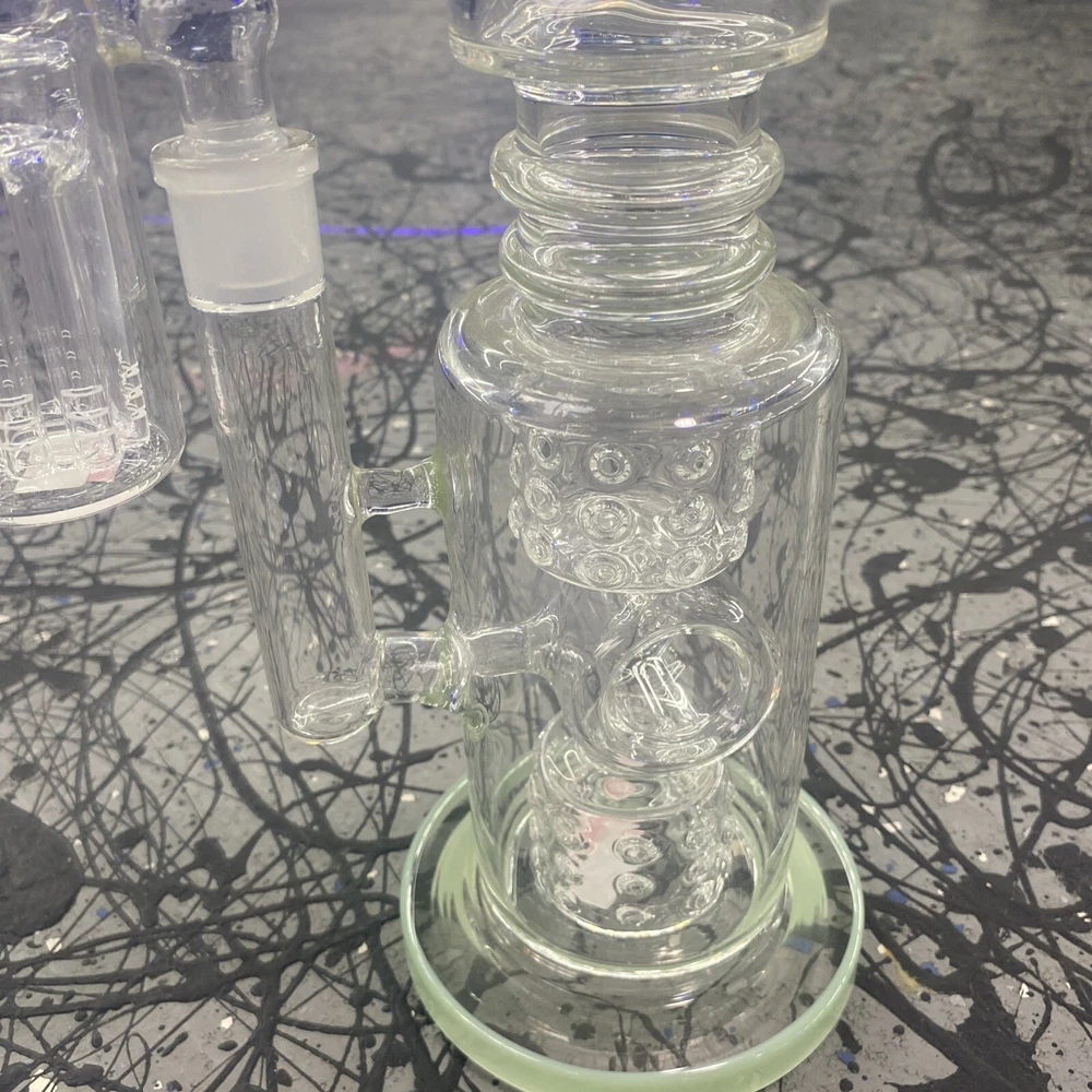 8" Glass Bong Bent Neck Recycler Water Pipe Telescope Design Hookah Bubbler