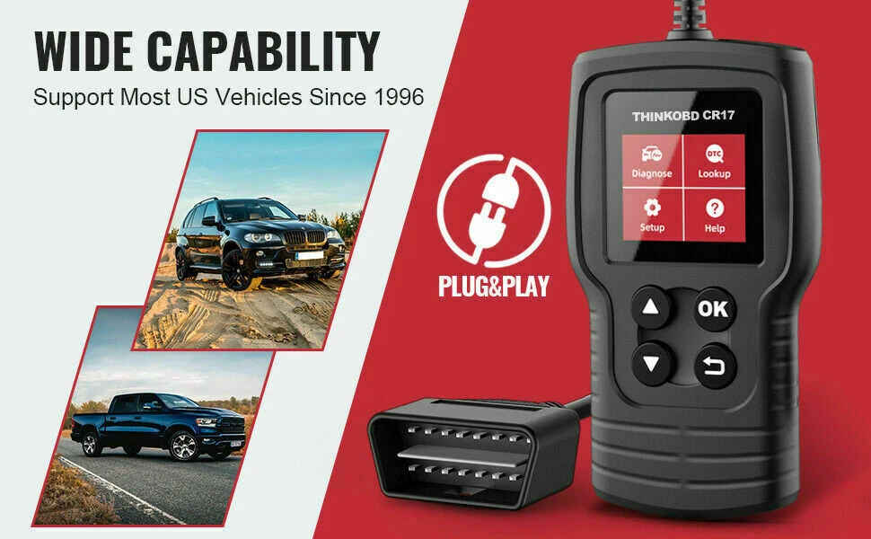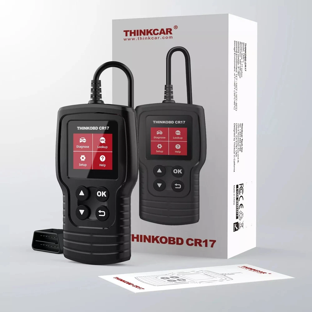 Thinkcar CR17 Thinkcar CR17 is a great upgrade from more basic car scanner, which comes with complete OBD2 functions, including read and clear DTCs, Freeze Frame Data Viewing, O2 Sensor Test, On-board Monitor Test, I/M Readiness Check, Live Data Stream Viewing, EVAP System Test, Vehicle Information, DTC Lookup. Thinkcar scanner CR17 is a reliable automotive tool to help you determine the cause and find a solution. Thinkcar OBD2 scanner CR17 work on 1996 US-Based, 2000 EU-Based and Asian Vehicle, featuring check engine light, I/M monitor readiness test, view live data, view freeze frame data, read and clear codes. view vehicle info, O2 Sensor test , EVAP system test, On-Board monitor test. For engine system, OBDII scanner CR17 perform full test of OBD2, including Read Codes , Erase Codes, I/M Readiness, Data Stream View, Freeze Frame, O2 Sensor Test, On-Board Monitor Test, EVAP System Test, Vehicle Info, DTC Lookup UNIVERSAL OBD2 COMPATIBILITY Designed to work with all standard OBD II compliant cars and light trucks /van sold in US, including all American, Asian, European vehicles. (Note, please check the vehicle if the Vehicle Emission Control Information Label states OBDII Certified, and if it has a 16-pin Data Link Connector. ) Turn off Check Engine Light The OBD2 scanner can find out quickly and accurately why the engine light on or flash, and help DIYers or mechanics locate the issue or even fix it. Just clear codes after certain repairs and the light will be turned off automatically. Just plug into your car’s 16-pin OBD II port, press the button according to your need, and you will see the fault code and its definition on the screen instantly. Then you can fix it or go the car repair shop without being cheated. Retrieve Vehicle Info CR17 OBD2 scan tool can easily get access to the car’s ECU and retrieve its information, including VIN (Vehicle Identification Number), CID (Calibration Identification), and CVN (Calibration verification number) for accurate diagnoses. No need to look around for the VIN. DTC Lookup With many code definition on the DTC library, you can check the code definition by yourself and decide whether you can fix it or have to get help from mechanic. This function of our car scanner really helps to save your time and money for the repairing. I/M readiness for Smog Tests Through the I/M Readiness function of CR17 OBD2 scanner, you can check if the various emission-related parts or systems on the vehicle are operating properly and make sure the monitors are ready for a smog test. If not, fix it before the smog test to pass the test successfully and avoid fines. Specification&Features 1.Supoort OBD2 Full Function: I/M:Readiness status test ,View freeze frame date, View data stream, O2 Sensor,Evap system test, ON-Board monitor test, Read & Clear DTCs , Identify VIN information, Read DTCs, DTC code look up, Turn off MIL, 2.Supported Protocols: J1859-41.6, J1850-10.4, ISO9141, KWP2000 (ISO 14230), and CAN (Control Area Network ISO 11898). 3.Multiple languages Suppot: English French German Spanish Russian Italian Application——Diagnoses Engine system, turns off the MIL Diagnostic System——Engine Bi-Directional Control&ECU Coding——Not Supported Read & Erase Trouble Codes/Turn off MIL——Yes Full OBDII Service——Yes Special Features——DTC Lookup DTC Look-up&Auto VIN————Yes Battery Voltage Test——Yes Software update—— Not Supported Product Dimensions——1.77 x 2.36 x 0.79 inches Weight—— 7 ounces