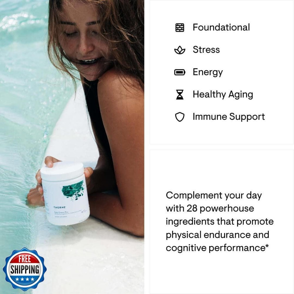THORNE Daily Greens Plus - Comprehensive Greens Powder with Matcha, Spirulina, Moringa and Adaptogen, Mushroom and Antioxidant Blends - Refreshing, Mint Flavor 7.2 Oz - 30 Servings Features Daily Greens Plus: A comprehensive daily greens powder for a healthy mind and body that supports foundational nutrition and promotes healthy aging* 28 Powerhouse Ingredients: Complement your day with ingredients designed to promote physical endurance, cognitive performance, cellular energy production, and provide antioxidants.* Includes adaptogens like ashwagandha, rhodiola, and eleuthero to help find balance* Greens Blend: Nutrient dense greens blend includes matcha, spirulina, moringa, kelp, and more to provide foundational nutrient, antioxidant, gut health, and detoxification support.* Each of the greens utilized in Daily Greens Plus meet Thorne’s strict standards for purity and sustainability Improved Flavor: Daily Greens Plus maintains exceptional health benefits with new great taste. Preferred by 9 out of 10 blind taste testers over a leading greens powder supplement, this product offers a daily serving of nutrient-packed greens, complemented by essential nutrients, antioxidants, and more. It is a low-calorie option with only 20 calories per serving. Trusted: Thorne is chosen by elite athletes and trusted by 100+ pro teams. Thorne is the only supplement manufacturer to collaborate with Mayo Clinic on wellness research and content. Thorne is also a proud partner of U.S. Olympic Teams Shipping Free & Fast Shipping: We offer free shipping to most of the USA with a normal delivery time of 3-7 days. However, due to the current situation, additional delivery time (up to 3 weeks) may be required for some items. Alternative Carriers: We may use alternative carriers (e.g., USPS, FedEx, UPS) to ensure your package arrives safely and on time. Due to the use of multiple carriers, we are unable to provide a tracking number automatically. Handling Time: Orders are processed and shipped within 1-2 business days of receiving cleared payment. Shipping Restrictions: Shipping to Alaska, Hawaii, Puerto Rico, Guam, and other US territories may incur shipping charges or delivery restrictions. Please contact us before ordering, or your order can be refunded/cancelled. State Restrictions: Certain items may not be shipped to California due to state regulations. Contact for Tracking Updates: If you require tracking updates or have any concerns about the delivery of your order, please feel free to contact us, and we will be happy to assist you. Return Policy 30-Day Hassle-Free Returns: If you are not completely satisfied with your purchase, you can return the item for free within 30 days of receiving it for a full refund or exchange. Easy Return Process: Contact us, and we will provide you with a prepaid return shipping label and detailed instructions. No Restocking Fee: There are no restocking fees for returns. However, the buyer is responsible for return shipping costs if the return is not due to a seller"s error. Refund Processing: Refunds will be processed within 1 business day of receiving the returned item in its original condition. Feedback Your feedback is extremely important to us. We strive to provide the best products and customer service possible. If you are satisfied with your purchase, please take a moment to leave us a positive review. If you have any concerns or issues with your order, please contact us before leaving negative feedback. We are committed to resolving any problems and ensuring your satisfaction. Contact Us If you have any questions or concerns, please feel free to reach out to our customer support team. You can contact us through the eBay messaging system. We are available Monday to Friday, 9:00 am to 5:00 pm EST, and we will do our best to respond to your inquiry within 24 hours. Thank you for supporting our small family business!