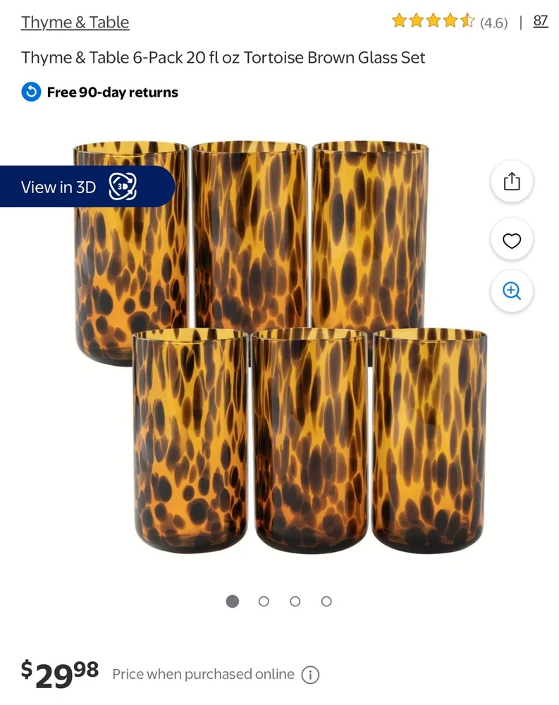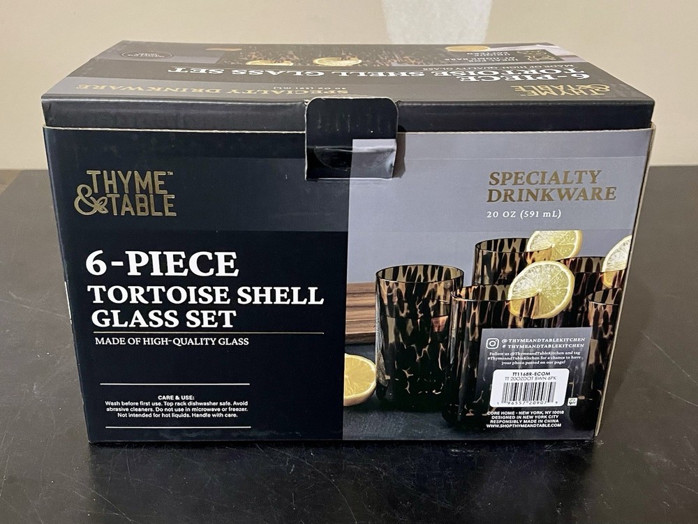 THYME & TABLE-Glass Set-NEW-6-Piece Tortoise Shell Glass Set-20 OZ Glasses This Item is NEW