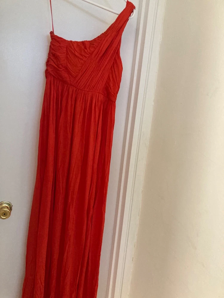 Department: Women Dress Length: Long Size Type: Regular Material: Cotton Brand: Tibi Neckline: One Shoulder Style: Maxi Size: 8 Occasion: Casual, Party/Cocktail, Travel Color: Red