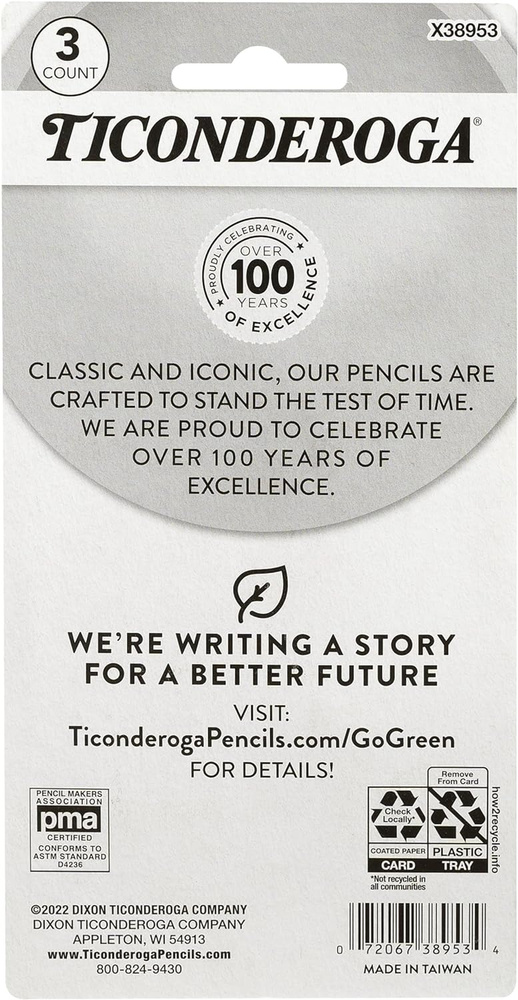 Size: 3 Count(Pack of 1) Product Dimensions: 7.25"L x 3.75"W UPC: 313019546514 Color: Yellow Number of Items: 1 Manufacturer: Dixon Ticonderoga Is Discontinued By Manufacturer: No Brand: Dixon Ticonderoga Shape: Pencil-shaped Manufacturer Part Number: 38953 gtin13: 313019546514 Item Weight: 1.6 ounces MPN: Does not apply Material Type: See Description Type: Does not apply Item model number: 38953 Material: See Description