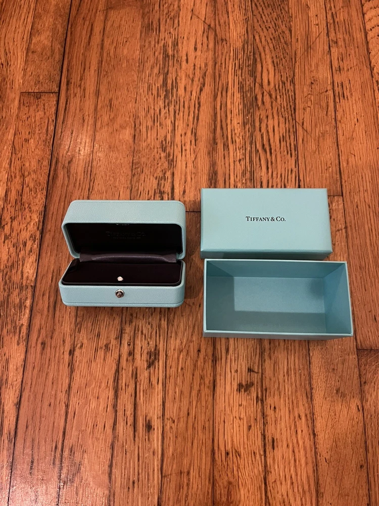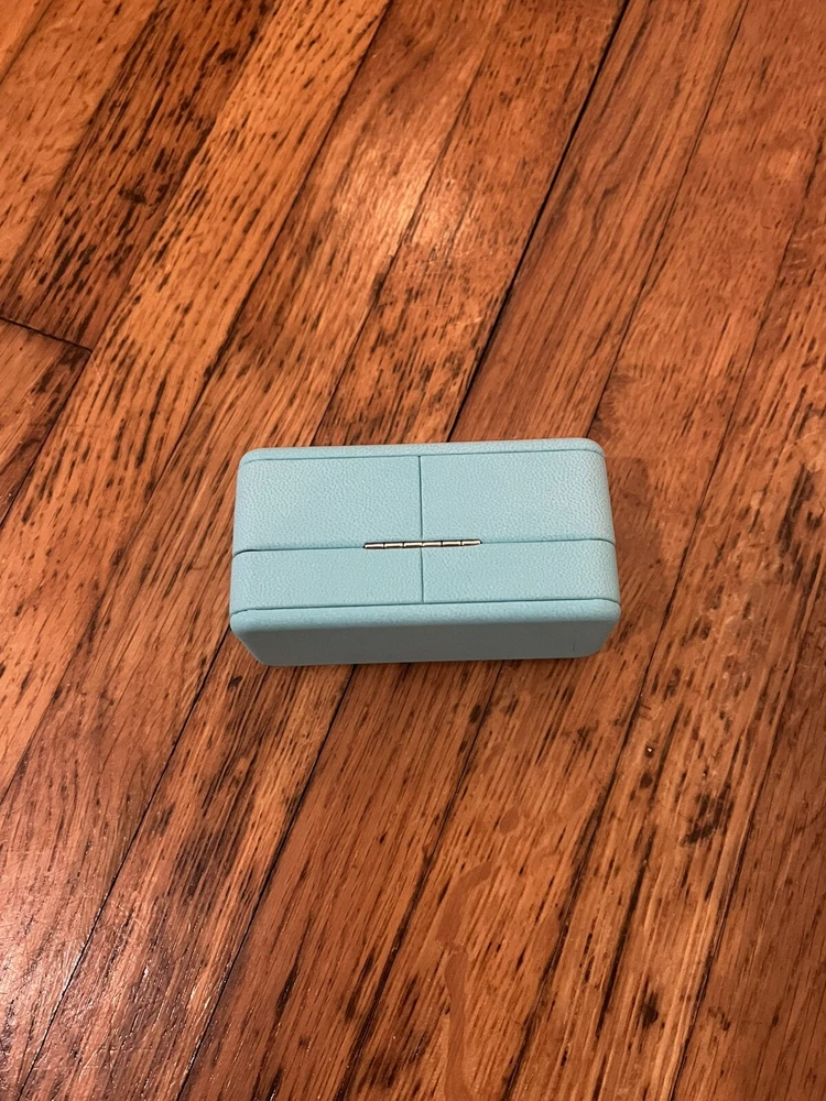 TIFFANY & CO. STUD EARRING CASE AND BOX BLUE LEATHER USED - EXCELLENT CONDITION