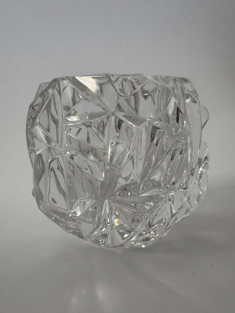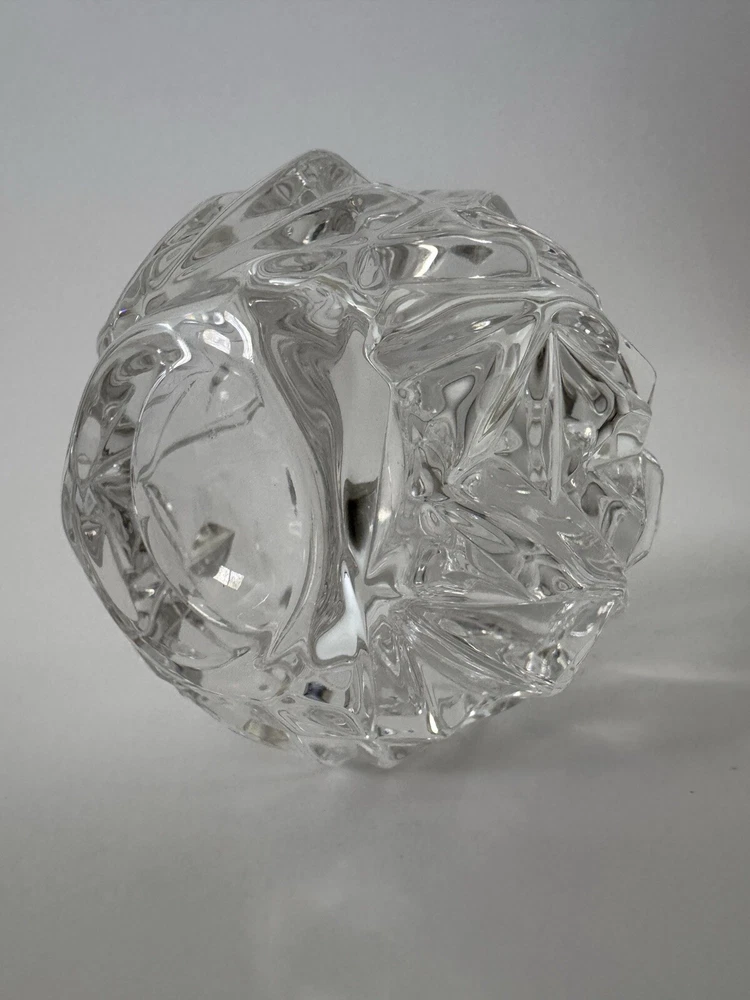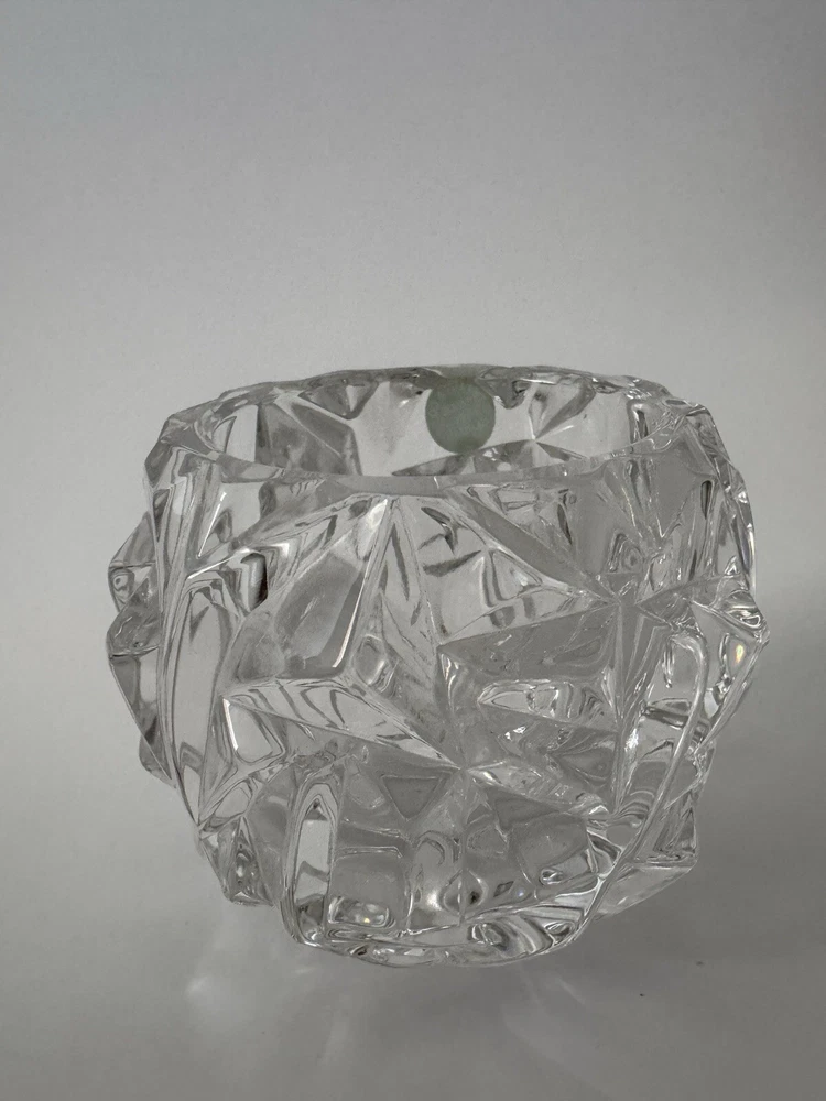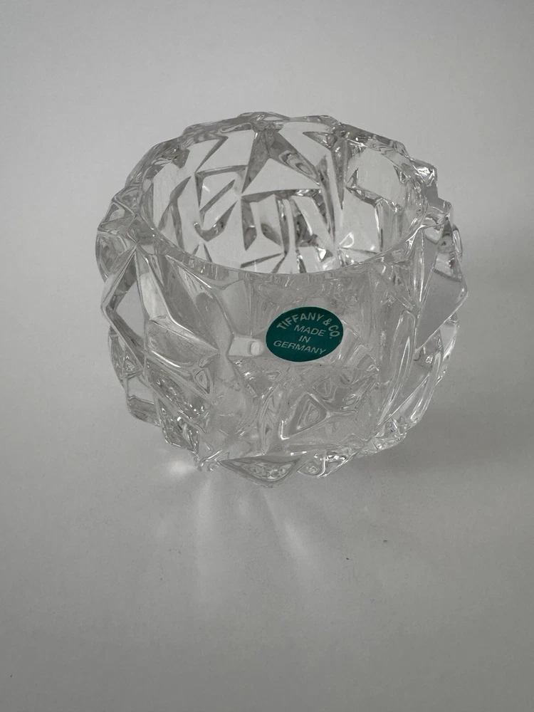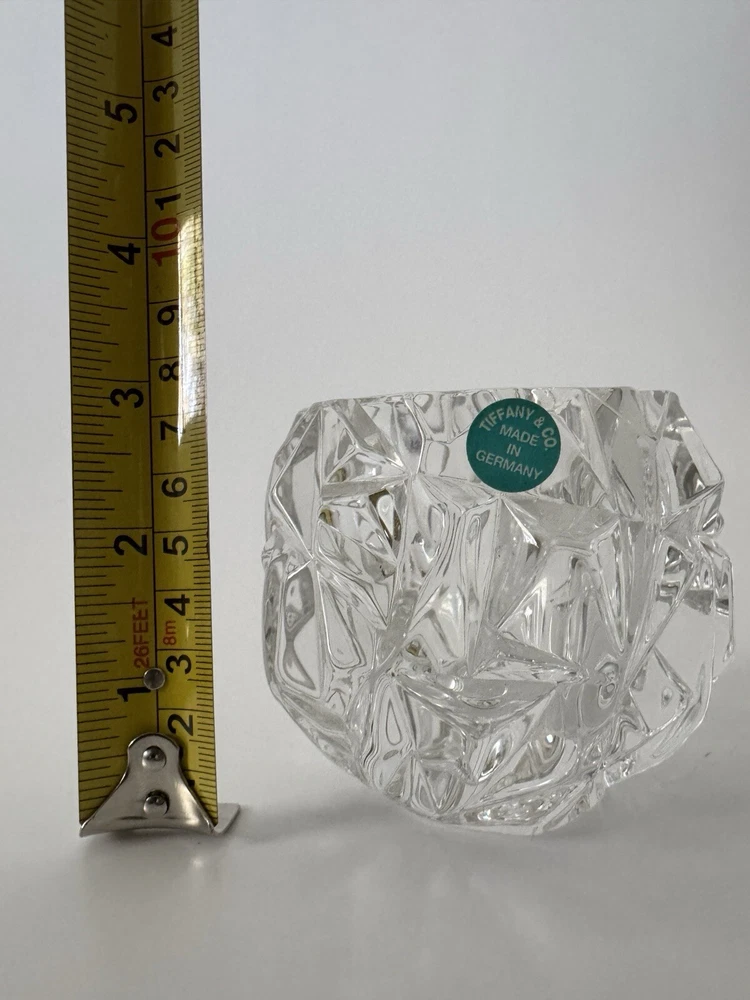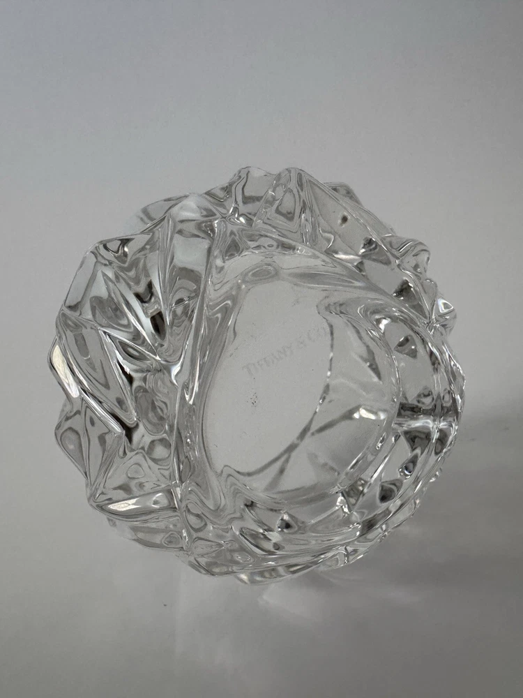 TIFFANY & CO. Signed 3” Crystal Rock Cut Votive Tea Light Candle Holder