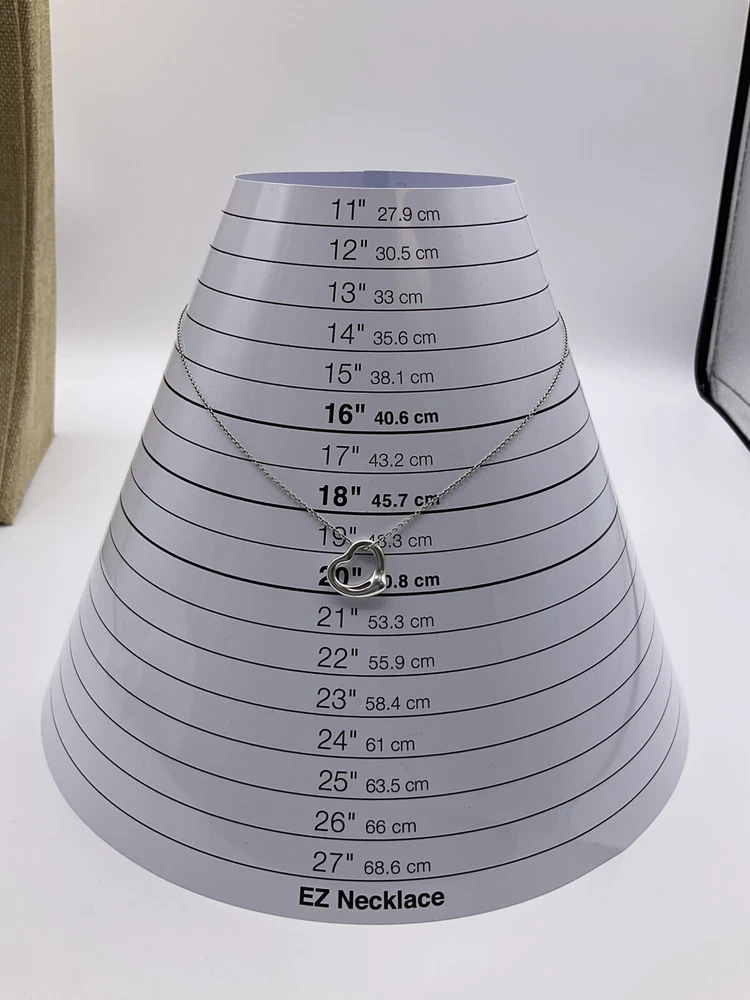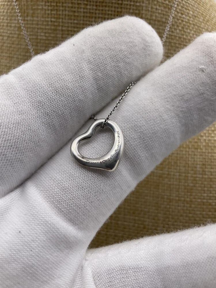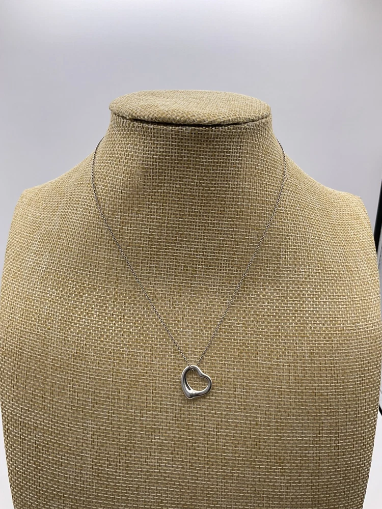 You are looking at a Authentic TIFFANY & Co. Elsa Peretti Open Heart Pendant Necklace Sterling Sliver 925 This item pre owned and has some surface marks. The item you will receive is exactly as shown in the pictures. Please refer to all the photos for full details! About Us Customer service is our #1 priority! If for any reason you are dissatisfied with your purchase we offer a 30 day money back guarantee unless otherwise noted in the listing (AS-IS/For Parts - No returns.) We only accept items back in the condition that they were sent to you. Items that are listed AS-IS are not eligible for this money back guarantee. If you are unhappy with your purchase PLEASE contact us BEFORE leaving feedback or contacting eBay so we can work with you to resolve any problems. Shipping When we charge shipping to our customers we only pass on to our buyers exact shipping costs - no added fees. We offer combined shipping for multiple items purchased, so if you purchase more than 1 item from us, please wait for us to combine shipping costs. We require signature confirmation on all items that sell for $750.00 & more per eBay's selling policy. We also insurance all items that sell for $250.00 & more. PLEASE NOTE: WE DO NOT WORK/SHIP ON HOLIDAYS OR WEEKENDS! We use the eBay Global Shipping program for international shipping. DLLR License #991 Please note, we are not an authorized distributor or manufacture's representative of this item. *This product may contain a chemical known to the state of California to cause cancer and birth defects or other reproductive harm* Track Page Views With Auctiva's Counter