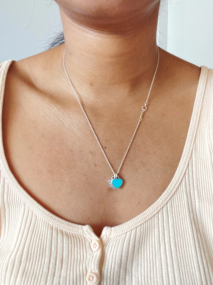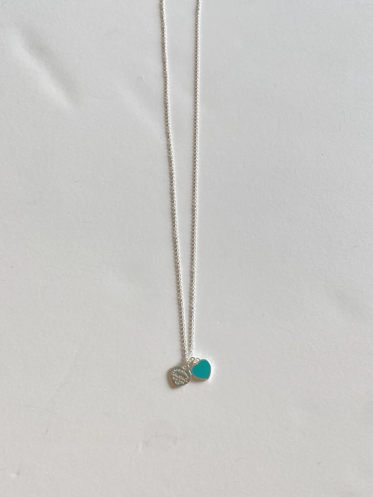 TIFFANY & Co. Return to Mini Double Blue Heart Enamel Pendant Necklace SV925
