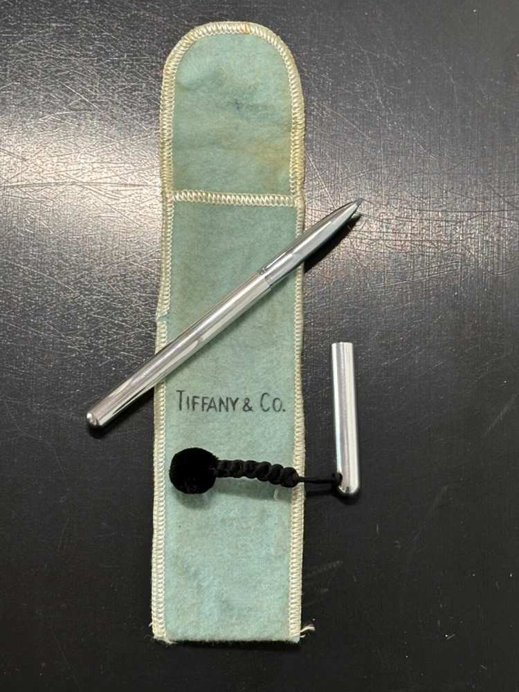 This Tiffany & Co. ballpoint pen is a rare vintage gem. Made of sterling silver, it exudes elegance and luxury. The pen features a charming pom pom design, adding a touch of playfulness to your writing. Perfect for collectors or those who appreciate a classic piece, this pen is a must-have addition to any collection. Circa 1970's. Needs ink.