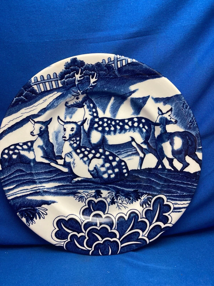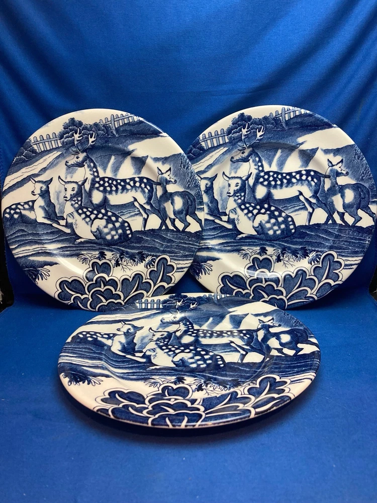 TIFFANY MENAGERIE BY JOHNSON BROTHERS, SET 3 SALAD PLATES TIFFANY & CO, ENGLAND Set of 3 salad plates in the design TIFFANY MENAGERIE by JOHNSON BROTHERS and TIFFANY & CO. Blue and white deer design. Plates have a diameter of 7 7/8''. In excellent condition with no chips, cracks, flakes, or other defects. Dishwasher safe. Made in England. Please ask questions before bidding or purchasing. Please be sure to visit my Ebay store for more fine china by some of the world's best makers! I also have fine crystal, sterling silver, silver plate and antique books. _gsrx_vers_1677 (GS 9.8.1 (1677))