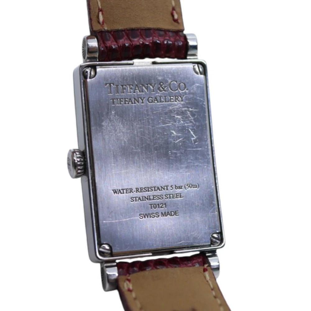 TIFFANY&Co. quartz T0121 gallery Watches Silver Stainless Steel/leather mens Description Item No 1016O266-42S Brand TIFFANY&Co. Item Watches Type quartz Gender mens Color Silver Model gallery Production Line T0121 Material Stainless Steel/leather Size(CM) Case:W19mm x H35mm Circumference of Wrist:17cm Case Thickness:6mm Size(Inch) Case:W0.7 x H1.4inch Circumference of Wrist:6.7inch Case Thickness:0.2inch Accessory None Condition Details AB Rubbed, signs of use Belt external goods