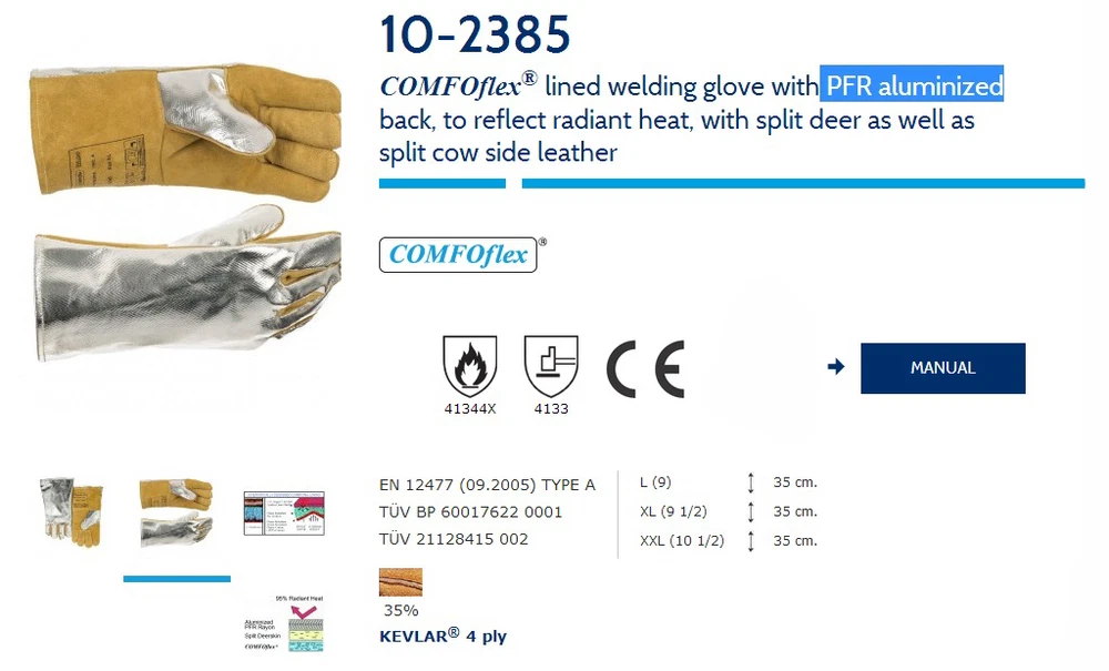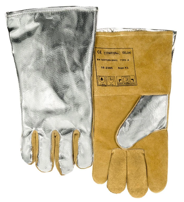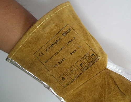 Item No:10-2385 Description: This warhorse premium deluxe welder gloves with foam lined and wing thumb will provide maximum protection in conditions when exposed to heat, flame or spark. The heavy side-split cow leather offers outstanding protection from heat. Golden yellow color palm and back is made of heavy side split cow leather with 1.4/1.5-mm thickness. Gloves are red form palm, black cotton drill flame resistant cuff lining and wing thumb type. Single/double yellow Aramid Fiber thread stitching with 8 stitches to an inch. It comes in gunn pattern, grey welts and cuff with flame resistant liner. Sewn with super-strong, heat-resistant Aramid Fiber thread thread. Can be used for Foundry, welding, all general purpose applications requiring heat, flame or spark protection. Available in Golden yellow color and M-X-large size. The heavy side-split cow leather offers outstanding protection from heat. Golden yellow color palm and back is made of heavy side split cow leather with 1.4/1.5-mm thickness. Gloves are red form palm, black cotton drill flame resistant cuff lining and wing thumb type. Single/double yellow Aramid Fiber thread stitching with 8 stitches to an inch. It comes in gunn pattern, grey welts and cuff with flame resistant liner. Features: Warhorse premium deluxe welder gloves with foam lined and wing thumb Golden yellow color palm and back is made of heavy side split cow leather with 1.4/1.5-mm thickness Gloves are red form palm, black cotton drill flame resistant cuff lining and wing thumb type Single/double yellow Aramid Fiber thread stitching with 8 stitches to an inch Available in blue color and large size Packing: 1 pair/bag Size: 14 inch length (L,XL) Application: welding & cutting