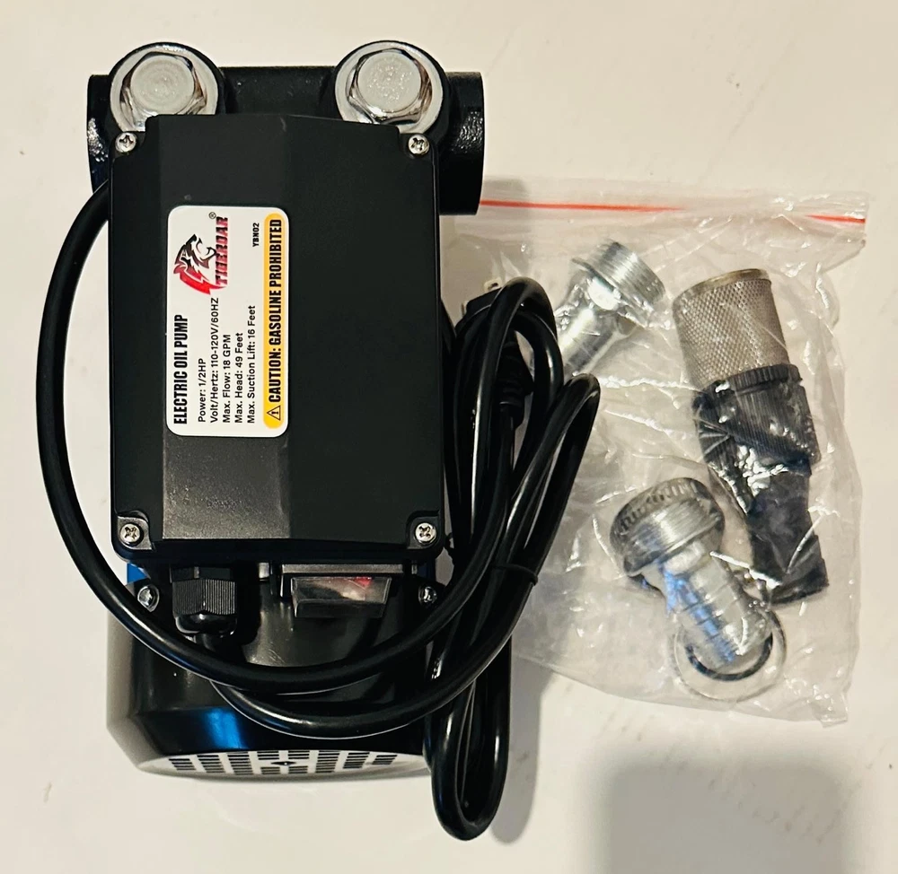TIGEROAR Oil Transfer Pump 110V Electric Fuel Transfer Pump 18 GPM Kerosene Biodiesel Diesel Fuel Filling Oil Draining. Note: The box has been opened (see photos), but the item is unused and in excellent condition in its original plastic in original box. Please check out my other listings — I add new items daily. Thank you!