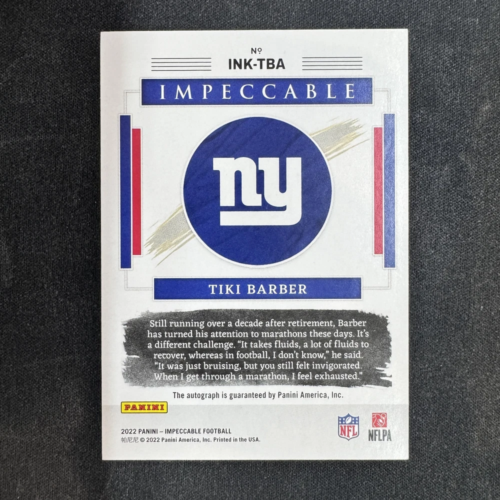 TIKI BARBER 2022 Panini Impeccable Illustrious Autograph Ink #INK-TBA /49 -hh