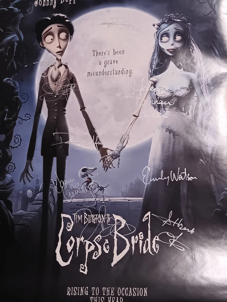 CHRISTMAS SALE REDUCED PRICE for HOliday Sales This is a HAND SIGNED Movie Poster from THE CORPS BRIDE! Double Sided CAST SIGNED !!! HAND SIGNED This auction is for an original HAND SIGNED movie poster from The Corps Bride, it is a Double sided. This is an original signature by the cast, NOT PRE PRINTED SIGNATURES! This was obtained in person! Measuring 27x40 inches. It has some slight bends it got during the hand signing, please see images but is in overall GREAT shape. This is hand signed by TIMM BURTON, Johny Deep and several other cast members ( See Pictures)! Don't pass this up its a great price for a super item. A great price for a great item. Check out our other auctions for other signed comic art. Don't delay Use the buy it now and save time. This is a great item for Comic fans and Collectors. Use the Buy it Now! Please Contact Me First If You Have 20 Or Less Feedback, Sorry To Say But Many New Ebayers Outbid Serious Bidders And Then Don’t Follow Through With Payments This Can Be Quite Frustrating And Very Unfair For Serious Ebay Bidders, Sorry For The Inconvenience . Kindly Read All Information Carefully Before Bidding, Thank You! Please see our other auctions for a Other Super Comic Items & we do offer Combined Shipping Payment must be received within 2 days of email notification of payment information; after which time an eBay unpaid item case will be opened. Please ask any and all questions you may have prior to bidding and use the BUY IT NOW This is an originally signed Premier Movie poster and ships rolled unless requested otherwise and is HAND SIGNED BY THE ACTORS!! You can choose more artworks by viewing our other auctions for more unique comic items. Attention! This is a hand signed piece and it may have spots, drips and paper may have waves. VERYIMPORTANT !!! PAYMENTMUST BE MADE WITHIN 48 HOURS. PLEASEDO NOT BID IF YOU DO NOT INTEND TO BUY! Thank You and Happy Bidding !!!! Please contact us with any questions relating to the item or for any information prior to bidding. SHIPPING PLEASEREAD CAREFULLY! Most items within 2-4 business days and take special care with any packaging involved we Use USPS First Class or Priority Mail service only, using delivery confirmation for safety and time dated tracking of when delivered. We do not ship on Saturday or Sunday PLEASE ASKQUESTIONS BEFORE PURCHASING. ALL ORDERS ARE FINAL. I DO NOT ACCEPTRETURNS. PLEASE REVIEW THE SAMPLES AND DETERMINE IF ITS WHAT YOU ARELOOKING FOR. REPRODUCTION RIGHTS ARE NOT INCLUDED. I RESERVE THERIGHT TO DISPLAY MY OWN ARTWORK TO ADVERTISE MY SERVICES. IF YOU ARENOT HAPPY WITH YOUR PURCHASE PLEASE CONTACT US AND LET US KNOW BEFORELEAVING NEGATIVE FEEDBACK. WE WILL DO EVERY THING WE CAN TO MAKE YOUREXPERIENCE A GOOD ONE AND TRY TO RESOLVE ALL ISSUES FORYOU. FEEDBACK: Feedback will be left after it is received. I will always return the favor