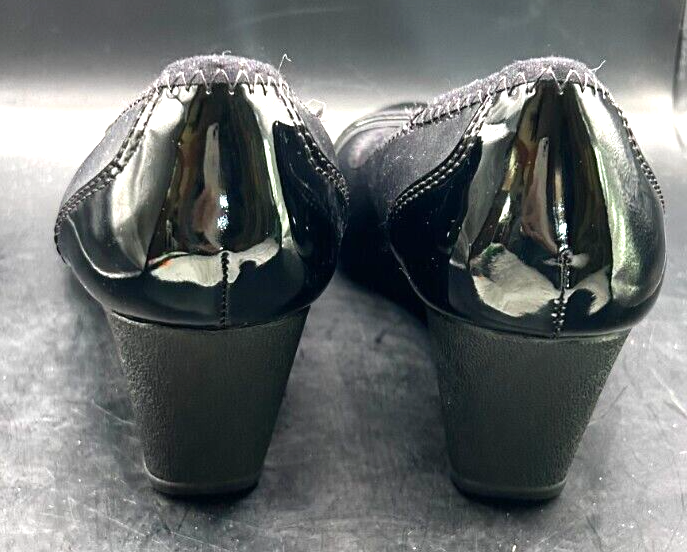 TIME AND TRU Women's Black Leather Platform Pumps Size 7 Fabric Patient Design