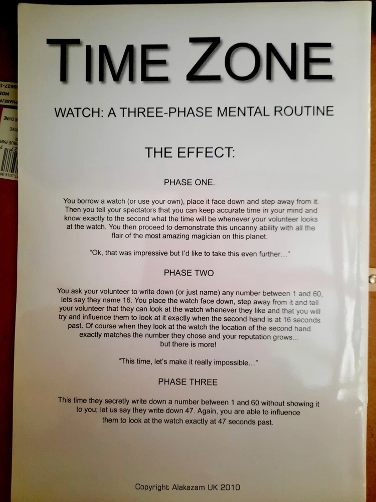 Time Zone Mentalism Full Three Phase Magic Routine 2010 John Vincent NEW Book