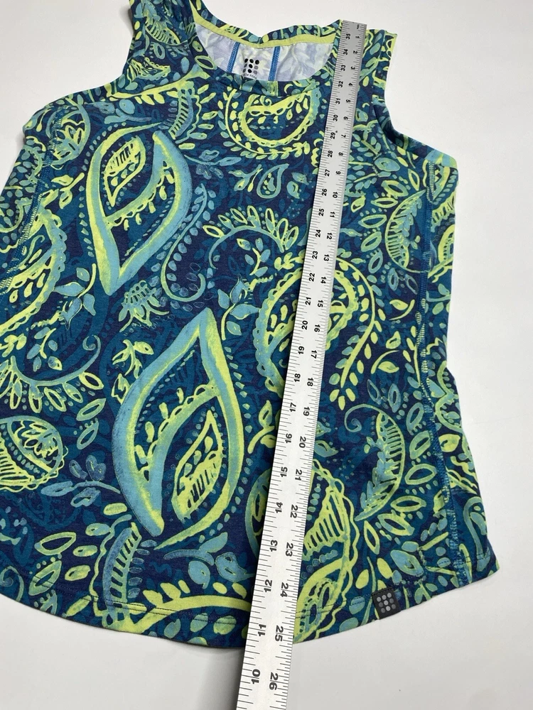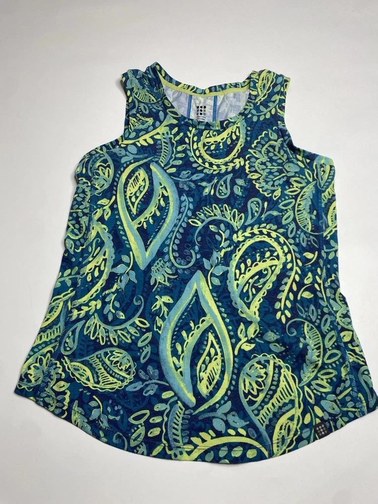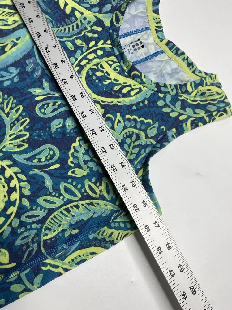 Size Type: Regular Brand: Title Nine Color: Green Features: Breathable, Stretch Material: Cotton Blend Style: Basic Fit: Regular Garment Care: Machine Washable Fabric Type: Blended fabric Occasion: Casual Closure: Pullover Personalize: No Accents: Logo Sleeve Length: Sleeveless Handmade: No Size: M Pattern: Paisley Vintage: No Neckline: Round Neck Department: Women Type: Tank