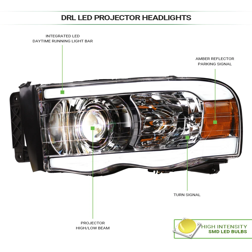 Powered by Frooition Save up to 5% daily deals shop now TLAPS For 02-05 Ram Chrome LED Strip Projector Headlights Amber+Horizontal Grill TLAPS For 02-05 Ram Chrome LED Strip Projector Headlights Amber+Horizontal Grill Part Number: hlpnb-ram02lbw-ac+fggg-grz-ram02-h-ch-201 Description Description Payment Shipping Return & Refund Feedback Description Item Description Projector Headlights Video will open in a new window Using the eBay App? Paste link into a browser window: [isdntekvideo] Application For 2002-2005 Dodge Ram 1500 Models 2003-2005 Dodge Ram 2500 / 3500 Models Attention Note : Will Not Fit Dodge Ram Van Models Will Not Fit SRT-10 / Sport Models Description Projector Headlights & Front Grill Grille Features Headlights : Custom Design With Fiber Optic LED Strips New Technology High Intensity SMD LED Tube Bar Daytime Running Light Can Be Help Other Road Users Identify & Better Visibility On Road Offers Extra Smooth & Bright Light During Day / Night Time Brings Significant Exterior Upgrade, Give Your Vehicle An Unique Look Front Grille : Luxury Sport Horizontal Style Product Details • 100% Brand New In Stock, Item Exactly As The Picture Shown • Comes With A Complete Set ( Driver & Passenger Side ) • Direct Bolt-On Replacement • Instruction Is Not Included, Highly Recommend To Install By Professional Mechanic • Modification Might Require For Using HID Lighting System • Dramatically Improve Both Styling & Appearance • Please Go Check Out Our Ebay Store For More Additional Hot Items Projector Headlights Technology : A Projector headlight is one type of headlights that produces a stronger beam compared to most parabolic headlights. Projector headlights light a more focused area, providing fewer of what we called "scatter loss". Their design is somewhat similar to a slide projector. Nowadays, this type of headlights is the most common for most cars and trucks since safety is the number one concern of road users. Technical Tips : For Cars That Do Not Have Daytime Running Light ( DRL ) Function: The Lights / HALO / LED Part Can Serve As / Give Out Daytime Running Light ( DRL ) As Extra Functions But In Order For It to Work, You Might Need Modifications To The Wirings And Plugs. Additional Wirings & Plugs For Daytime Running Light ( DRL ) Function Will Not Be Provided. Please Advice Mechanics For Installation & Remember that Professional Installation Is Always Highly Recommended. ** Please make sure all Headlights are install properly, sockets are tightly fastened and all O-rings or rubber gaskets are in great condition. Broken or loose O-rings or rubber gaskets on your factory sockets can cause moisture in your lights ( It can damage your light bulb ). If you happen to have moisture buildup in your lights, please try the following solution. simply remove the lights from the vehicle and set out in the sun or in a dry area for at least few hours. Wait until the moisture has fully evaporated, and reseal around the seams with a clear silicone sealant on the assembly and replace any worn down O-rings or rubber gaskets. This should alleviate the condensation issue. Payment Payment Please complete the Ebay checkout within 3 days after winning. Payment is expected within 3 days after auction ends. Product availability is not guaranteed after 3 days. PAYPAL payment is for US. customer only and we only ship to PayPal confirmed address, no exception. PAYPAL payment ( in USD ) is the only payment method will be accepted for International Buyers. Insufficient payment amount or missing information will delay the process of order, please read the invoice carefully. Shipping Shipping U.S. 48 Contiguous States Shipping Service: UPS / Fedex Ground Price: $ 0 Transit Time: 1-7 Days With Tracking U.S. 48 Contiguous States ( Express Shipping Service ) Shipping Service: FedEx 2Day Price: $ 294 Transit Time: 1-3 Days With Tracking Canada Shipping Service: Fedex International Economy Price: $ 318 Transit Time: 2-5 Business Days With Tracking ( Brokerage Fee Is Included ) Alaska & Hawaii Shipping Service: FedEx 2Day Price: $ 294 Transit Time: 1-3 Days With Tracking International ( U.K. Europe, Australia Only ) Shipping Service: Not Available Price: $ Not Available Transit Time: Not Available There will be 9.5% Sales Tax on the Total sales price With Shipping Cost for California Buyers. " Free Shipping " Services, If offer, is for US Lower 48 States Buyers Only. Alaska & Hawaii will have a different Shipping rate. We accept Paypal / Credit Card payment through Ebay Checkout ONLY. We only ship to Paypal Confirmed Address as this is recommended for both buyer and seller protection. Most of the orders will be shipped out from our main warehouse CA 91789 within 24-48 hours after payment is cleared. The transit time is provided by the shipping carrier based upon the item is picked up. Additional shipping charge will be applied to reship for incorrect address entered by the buyer at checkout. We DO NOT Ship to PO Box , APO, FPO, Puerto Rico , Virgin Islands, Guam , American Samoa , Minor Outlying Islands , Northern Mariana Islands. International & Canada buyers are responsible for any possible brokerage/custom fee. Please consult with your local post office or authority for details. All International countries except CANADA. If Buyer can't find their country shipping rate in the Ebay shipping info, We apologize that we couldn't process the shipment to those countries which are not listed. Alaska & Hawaii Buyers Attention: Please only choose The Correct Shipping Method That Shown On The Shipping Table For ALASKA & HAWAII at the Ebay checkout to complete the transactions. It is the only shipping method that we provide for customers on U.S. territories outside the lower 48 states. Wrong shipping method selected will put the order on hold for insufficient shipping fee paid. There are shipping size limitation on certain items such as body parts that we are not be able to ship to AK/HI. Please feel free to conta