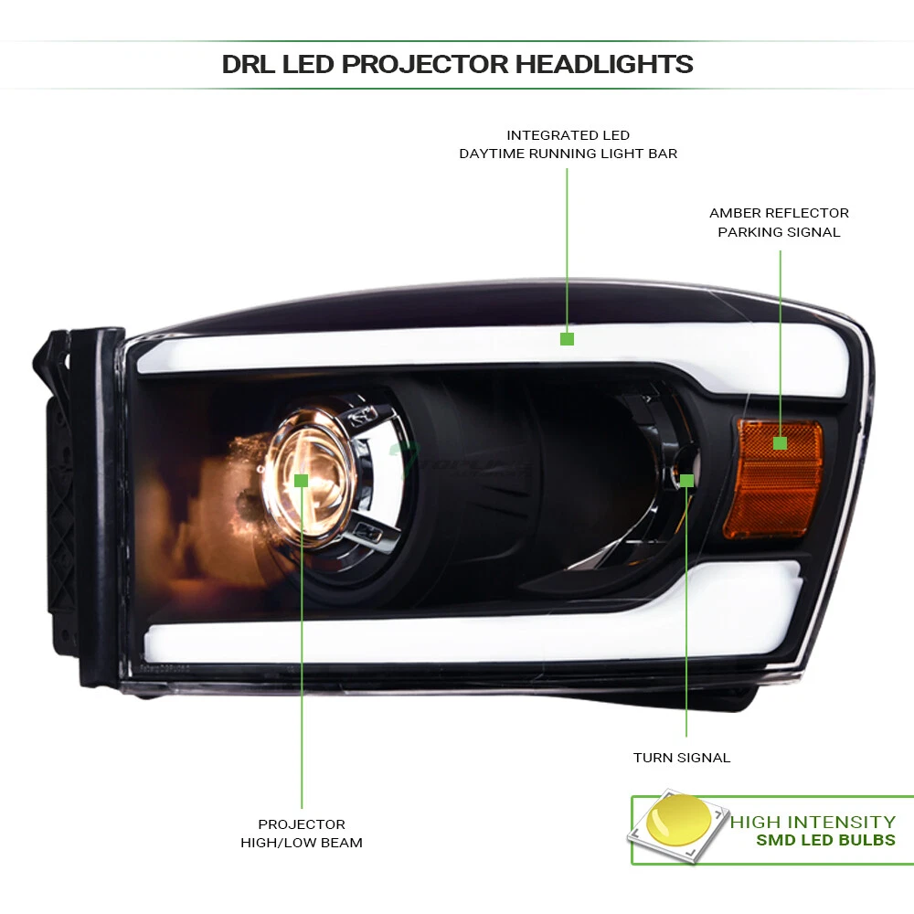Powered by Frooition Save up to 5% daily deals shop now TLAPS For 2006-2009 Ram Blk LED Strip Projector Headlights Amber+Vertical Grille TLAPS For 2006-2009 Ram Blk LED Strip Projector Headlights Amber+Vertical Grille Part Number: hlpnb-ram06lbw-ab+fggg-grzv-ram06-vt-bk-201 Description Description Payment Shipping Return & Refund Feedback Description Item Description Projector Headlights Video will open in a new window Using the eBay App? Paste link into a browser window: [isdntekvideo] Application For 2006-2008 Dodge Ram 1500 Models 2006-2009 Dodge Ram 2500 / 3500 Models ( Will Not Fit Diesel Models ) Description Projector Headlights & Front Grill Grille Features Headlights : Custom Design With Fiber Optic LED Strips New Technology High Intensity SMD LED Tube Bar Daytime Running Light Can Be Help Other Road Users Identify & Better Visibility On Road Offers Extra Smooth & Bright Light During Day / Night Time Brings Significant Exterior Upgrade, Give Your Vehicle An Unique Look Front Grille : Luxury Sport Vertical Style Product Details • 100% Brand New In Stock, Item Exactly As The Picture Shown • Comes With A Complete Set ( Driver & Passenger Side ) • Direct Bolt-On Replacement • Instruction Is Not Included, Highly Recommend To Install By Professional Mechanic • Modification Might Require For Using HID Lighting System • Dramatically Improve Both Styling & Appearance • Please Go Check Out Our Ebay Store For More Additional Hot Items Projector Headlights Technology : A Projector headlight is one type of headlights that produces a stronger beam compared to most parabolic headlights. Projector headlights light a more focused area, providing fewer of what we called "scatter loss". Their design is somewhat similar to a slide projector. Nowadays, this type of headlights is the most common for most cars and trucks since safety is the number one concern of road users. Technical Tips : For Cars That Do Not Have Daytime Running Light ( DRL ) Function: The Lights / HALO / LED Part Can Serve As / Give Out Daytime Running Light ( DRL ) As Extra Functions But In Order For It to Work, You Might Need Modifications To The Wirings And Plugs. Additional Wirings & Plugs For Daytime Running Light ( DRL ) Function Will Not Be Provided. Please Advice Mechanics For Installation & Remember that Professional Installation Is Always Highly Recommended. ** Please make sure all Headlights are install properly, sockets are tightly fastened and all O-rings or rubber gaskets are in great condition. Broken or loose O-rings or rubber gaskets on your factory sockets can cause moisture in your lights ( It can damage your light bulb ). If you happen to have moisture buildup in your lights, please try the following solution. simply remove the lights from the vehicle and set out in the sun or in a dry area for at least few hours. Wait until the moisture has fully evaporated, and reseal around the seams with a clear silicone sealant on the assembly and replace any worn down O-rings or rubber gaskets. This should alleviate the condensation issue. Payment Payment Please complete the Ebay checkout within 3 days after winning. Payment is expected within 3 days after auction ends. Product availability is not guaranteed after 3 days. PAYPAL payment is for US. customer only and we only ship to PayPal confirmed address, no exception. PAYPAL payment ( in USD ) is the only payment method will be accepted for International Buyers. Insufficient payment amount or missing information will delay the process of order, please read the invoice carefully. Shipping Shipping U.S. 48 Contiguous States Shipping Service: UPS / Fedex Ground Price: $ 0 Transit Time: 1-7 Days With Tracking U.S. 48 Contiguous States ( Express Shipping Service ) Shipping Service: FedEx 2Day Price: $ 331 Transit Time: 1-3 Days With Tracking Canada Shipping Service: Fedex International Economy Price: $ 349 Transit Time: 2-5 Business Days With Tracking ( Brokerage Fee Is Included ) Alaska & Hawaii Shipping Service: FedEx 2Day Price: $ 331 Transit Time: 1-3 Days With Tracking International ( U.K. Europe, Australia Only ) Shipping Service: Not Available Price: $ Not Available Transit Time: Not Available There will be 9.5% Sales Tax on the Total sales price With Shipping Cost for California Buyers. " Free Shipping " Services, If offer, is for US Lower 48 States Buyers Only. Alaska & Hawaii will have a different Shipping rate. We accept Paypal / Credit Card payment through Ebay Checkout ONLY. We only ship to Paypal Confirmed Address as this is recommended for both buyer and seller protection. Most of the orders will be shipped out from our main warehouse CA 91789 within 24-48 hours after payment is cleared. The transit time is provided by the shipping carrier based upon the item is picked up. Additional shipping charge will be applied to reship for incorrect address entered by the buyer at checkout. We DO NOT Ship to PO Box , APO, FPO, Puerto Rico , Virgin Islands, Guam , American Samoa , Minor Outlying Islands , Northern Mariana Islands. International & Canada buyers are responsible for any possible brokerage/custom fee. Please consult with your local post office or authority for details. All International countries except CANADA. If Buyer can't find their country shipping rate in the Ebay shipping info, We apologize that we couldn't process the shipment to those countries which are not listed. Alaska & Hawaii Buyers Attention: Please only choose The Correct Shipping Method That Shown On The Shipping Table For ALASKA & HAWAII at the Ebay checkout to complete the transactions. It is the only shipping method that we provide for customers on U.S. territories outside the lower 48 states. Wrong shipping method selected will put the order on hold for insufficient shipping fee paid. There are shipping size limitation on certain items such as body parts that we are not be able to ship to AK/HI. Please feel free to contact us prior to bidding. We do provide Combined Shipping