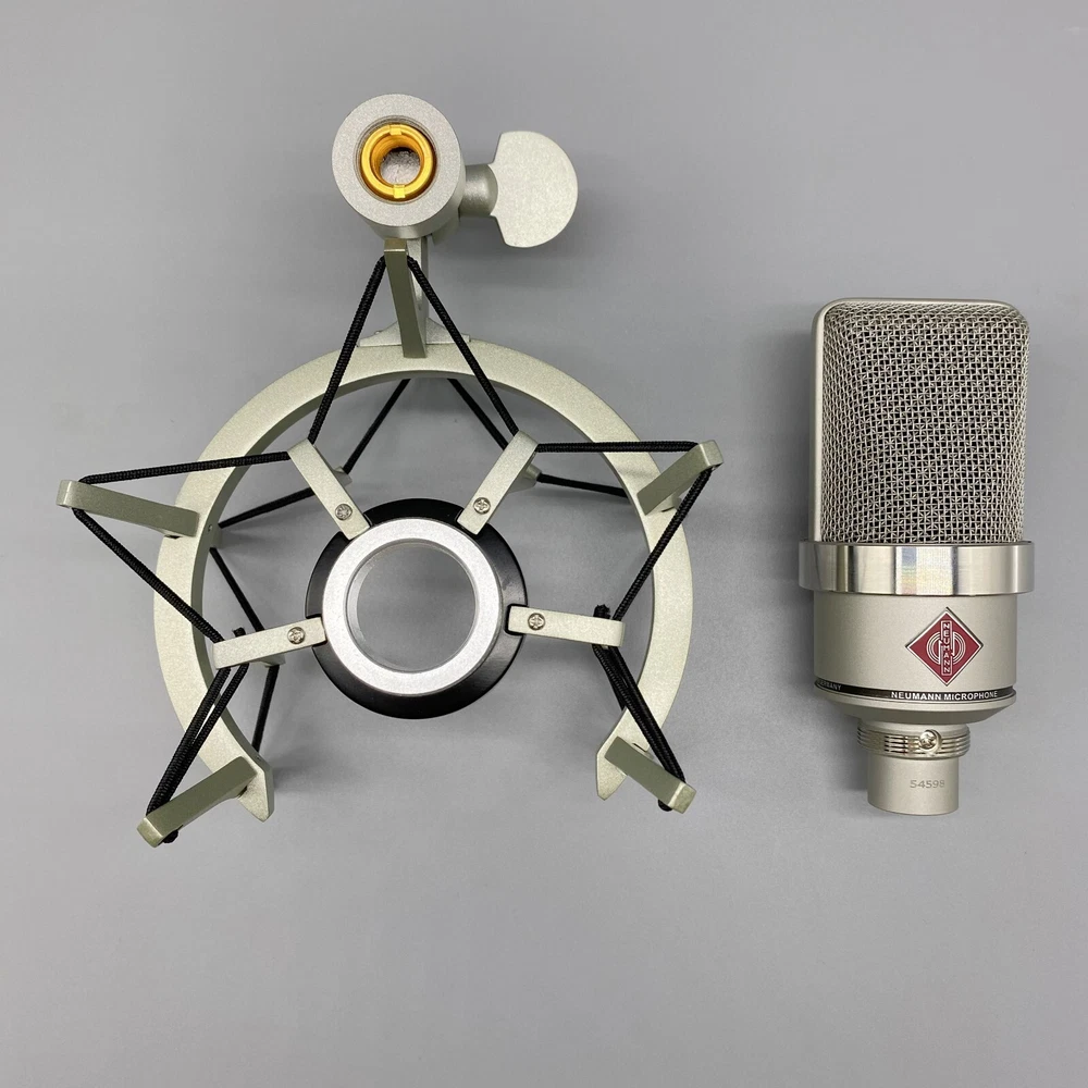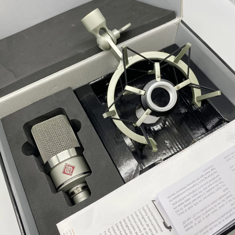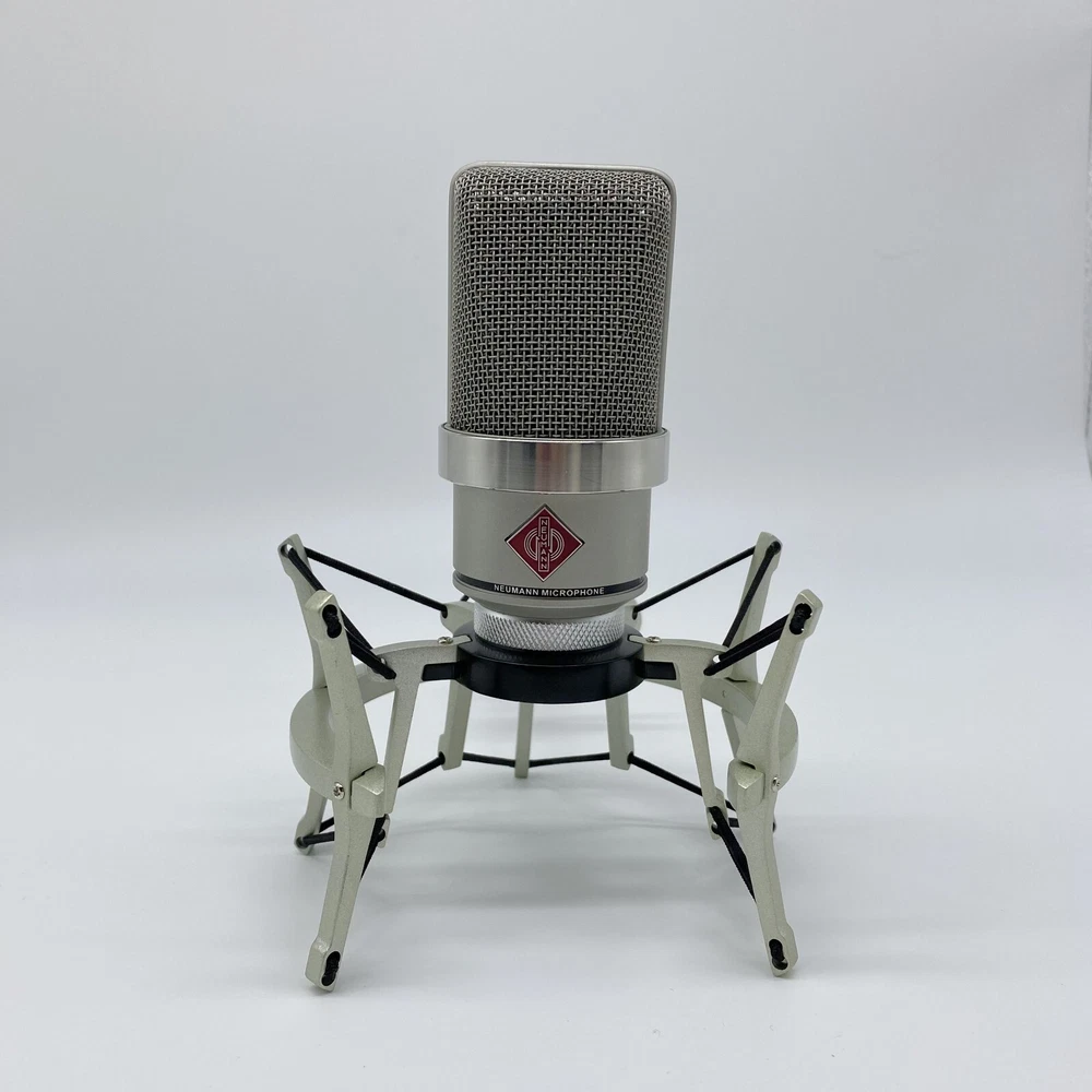Styled in a nickel finish, TLM-102 Large-Diaphragm Studio Condenser Microphone from Neumann is a large diaphragm condenser microphone operating in a cardioid polar pattern. It has the ability to withstand very high sound pressure levels. The capsule, with its high SPL rating, permits the recording of percussion, drums, amplifiers, and other very loud sound sources. The microphone is equally capable when recording lower volume sounds due to its very fast transient response. However, its most important applications are in the realm of vocals and speech. A slight boost above 6 kHz provides great vocal presence, while below 6 kHz the frequency response is extremely linear for minimal coloration and a clearly defined bass range. The capsule has an elastic suspension for minimizing structure-borne noise, while an integrated pop screen in the grille aids in suppressing plosives in vocal and speech recording .