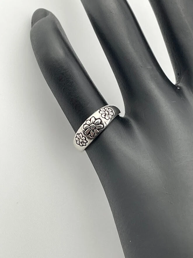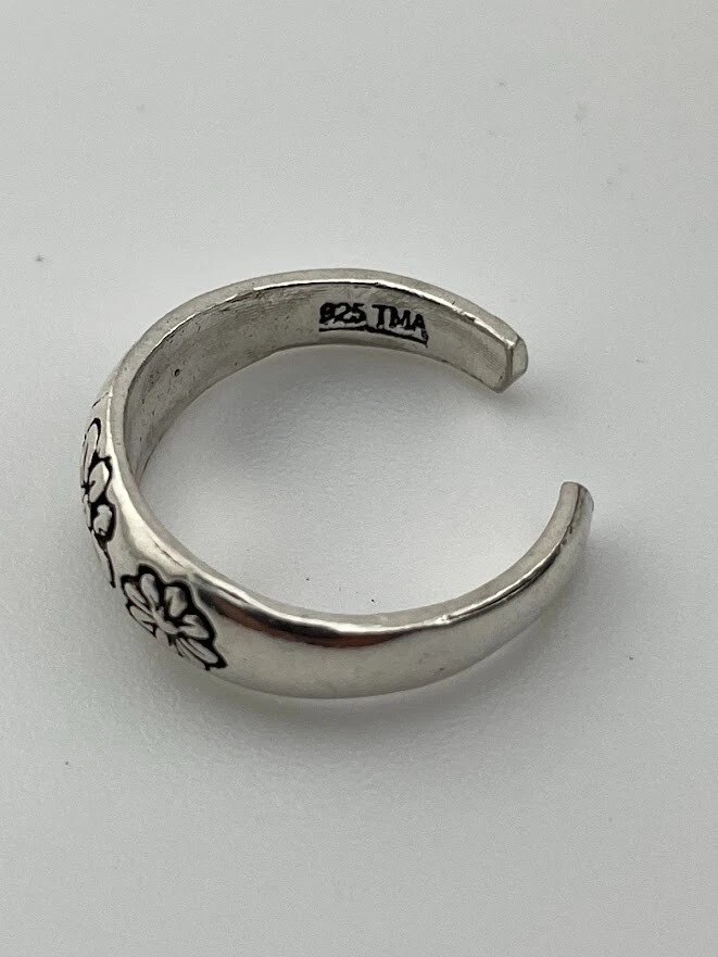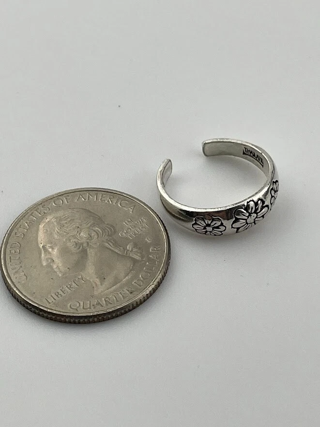 TMA THAILAND 925 STERLING SILVER DAISY FLORAL RING SIZE 4.5 TOE PINKY 2431 FINGERTIP ****************************** Thank you for your interest in our jewelry. We?d like to introduce ourselves. We are just a retired couple who love matching our customers with great jewelry. We?re not professional jewelers. To have the best shopping experience we like to recommend the following: Please measure your hand, wrist, finger or neck to ensure the best fit. We can use your measurements to help with sizing. Please ask all the questions you want. We know some stuff and, if we don?t, we?ll do the research. We like to learn too. More Stuff: If an item is described as ?gold over 925 sterling silver? this means it is gold vermeil. Vermeil is the process by which a layer of gold (usually 14k or 18k) is bonded to sterling silver. We only clean with gentle soap and warm water to avoid damage. The items we sell may be new or pre-owned and may have normal wear, slight damage, and/or tarnish. We make every effort to ensure the items we sell are as described. This includes testing to confirm metal purity if the item isn?t marked, and testing for gemstone identity. We try to put measurements in the jewelry description and include a photo of each piece with a U.S. quarter (25mm).