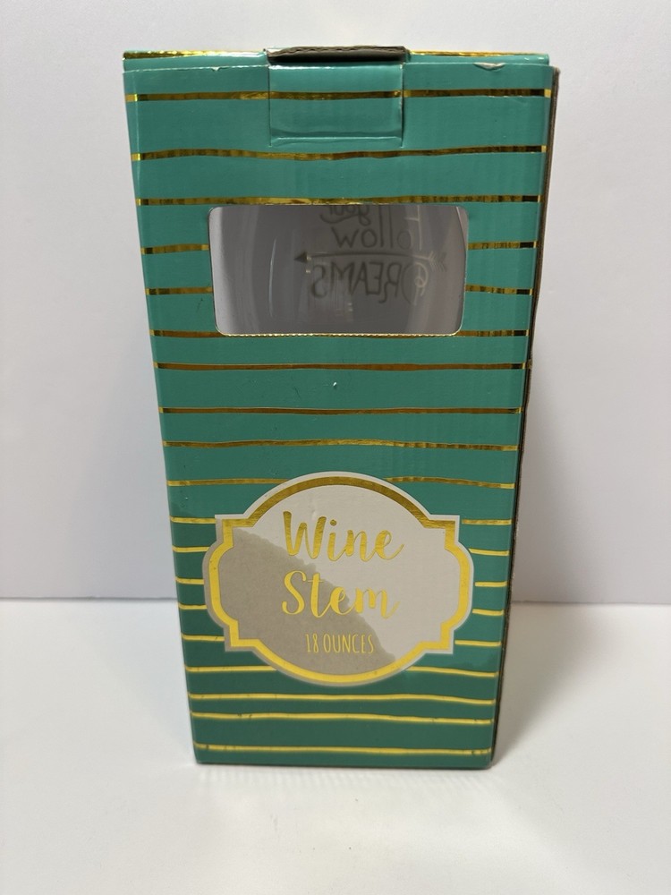 Brand New Sealed! 30 day free return! The TMD Holdings "Follow Your Dreams" 18 oz Wine Stem Glass is a beautiful and unique wine glass perfect for all occasions. Made of teal blue glass with a capacity of 18 ounces, this 8.5" glassware item features a decorative theme of "Follow Your Dreams." The wine glass is brand new in the package, making it a great addition to any home bar or kitchen collection. Ideal for both men and women, this wine glass is sure to add a touch of elegance to your drinkware collection.