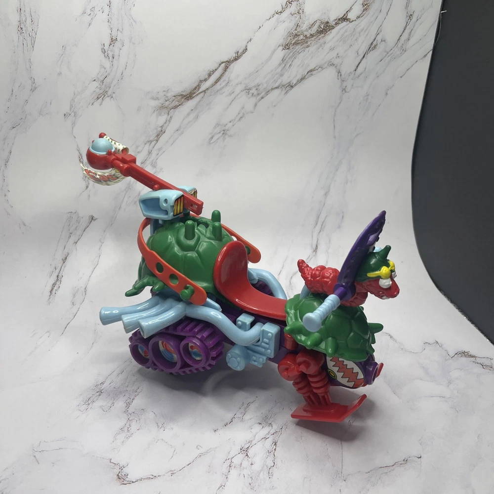 This is a Teenage Mutant Ninja Turtles action figure from 1989, featuring Michelangelo in his signature orange bandana and boxing gloves. The item includes a ball and belt, and is made of durable plastic material. This vintage toy is perfect for collectors and fans of the TMNT franchise, and is an original licensed reproduction from Playmates Toys. The model number is 99401US01, and it is suitable for children ages 8-11 years old. The toy is a mix of colors and has a unique design that captures the essence of the character. It is a great addition to any collection and is sure to bring back memories of the iconic TV show and movie.