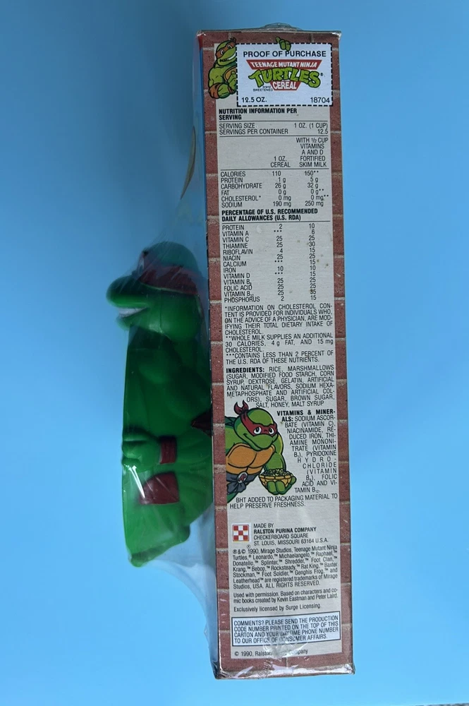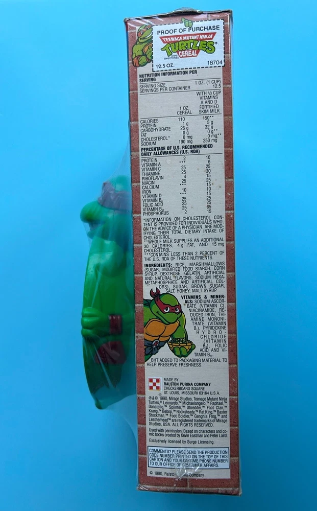 TMNT Raphael Cereal Box Bowl Teenage Mutant Ninja Turtles 1990 Ralston NEW SEALD