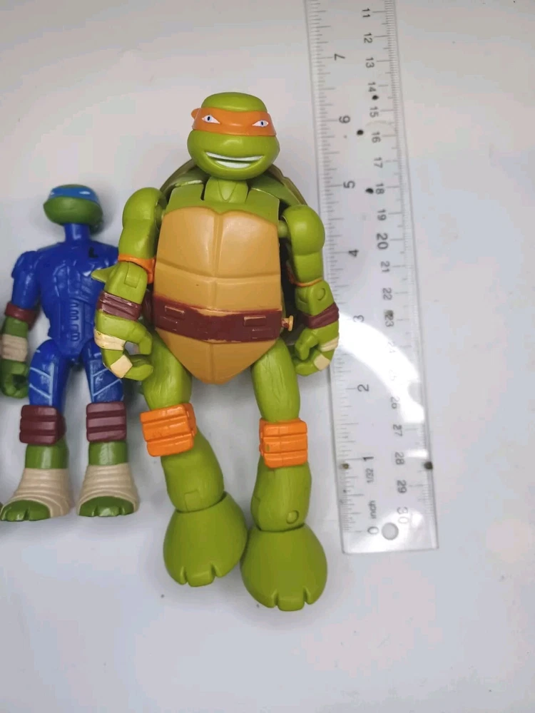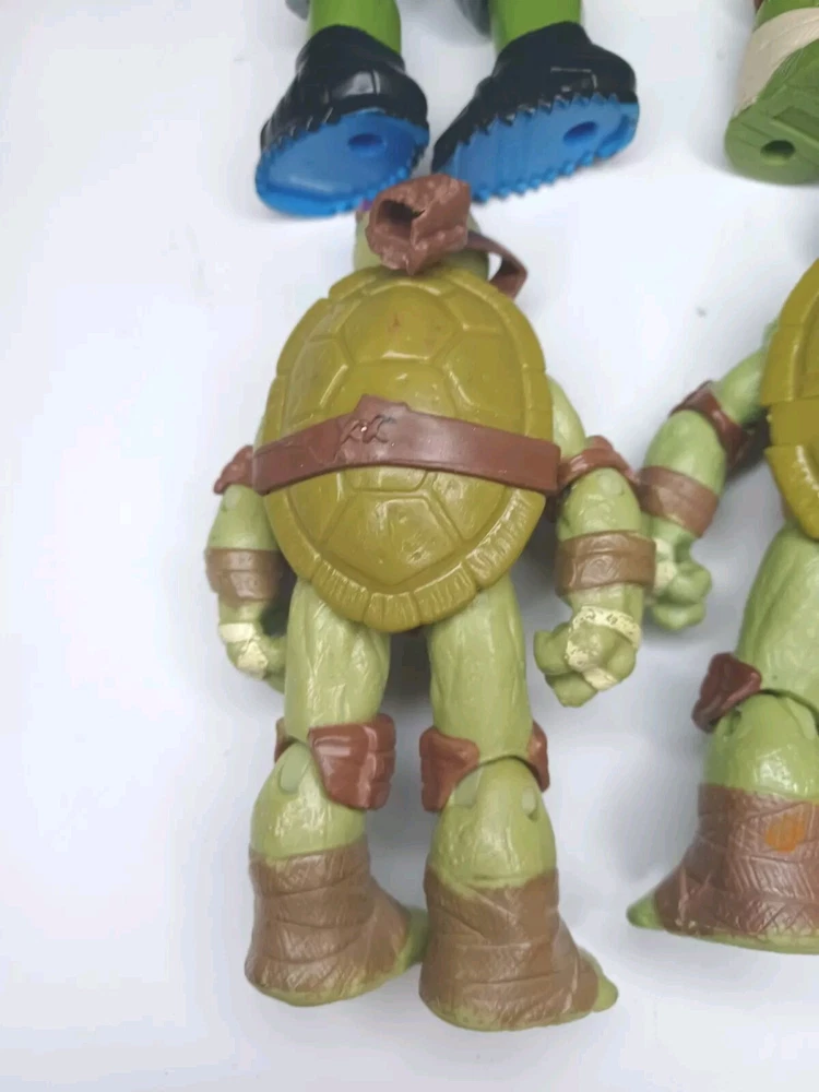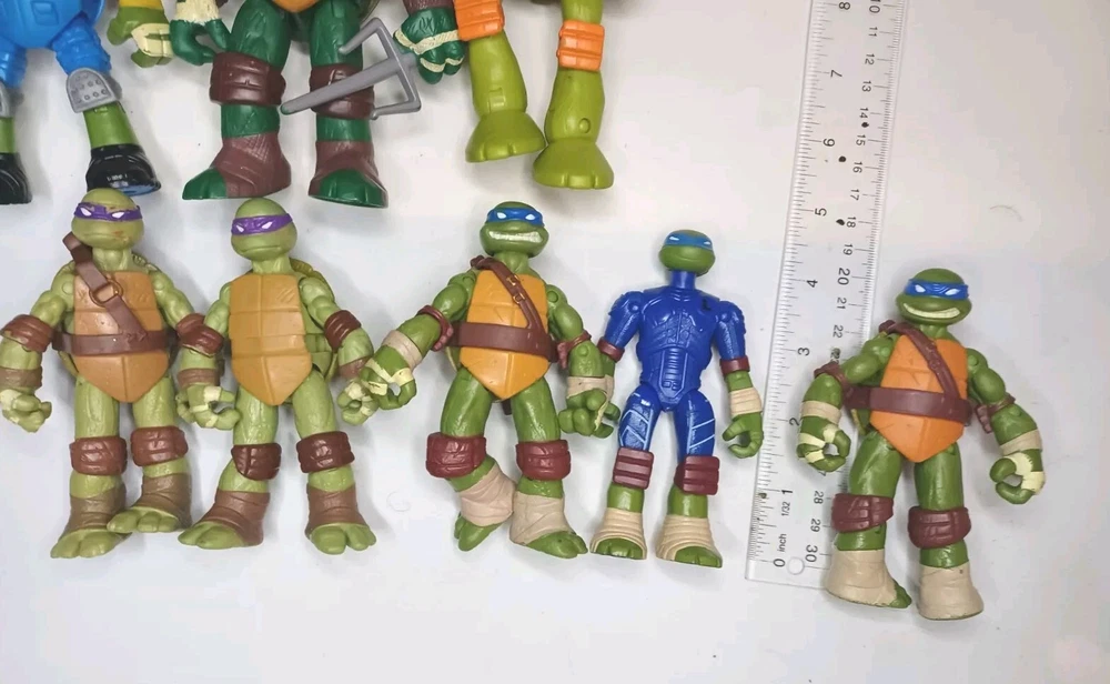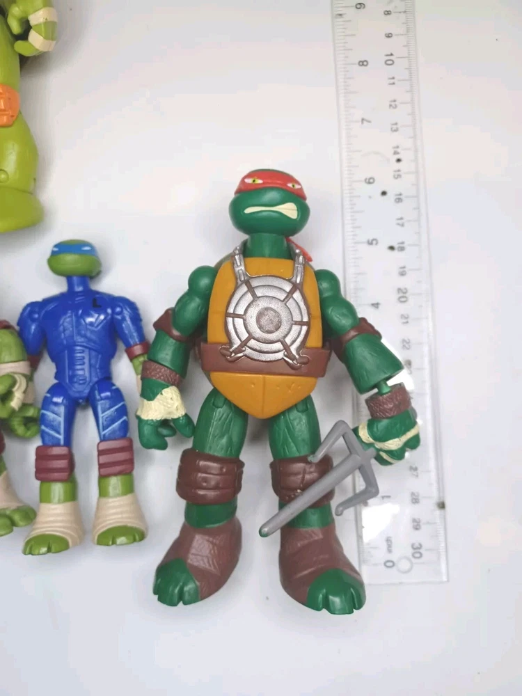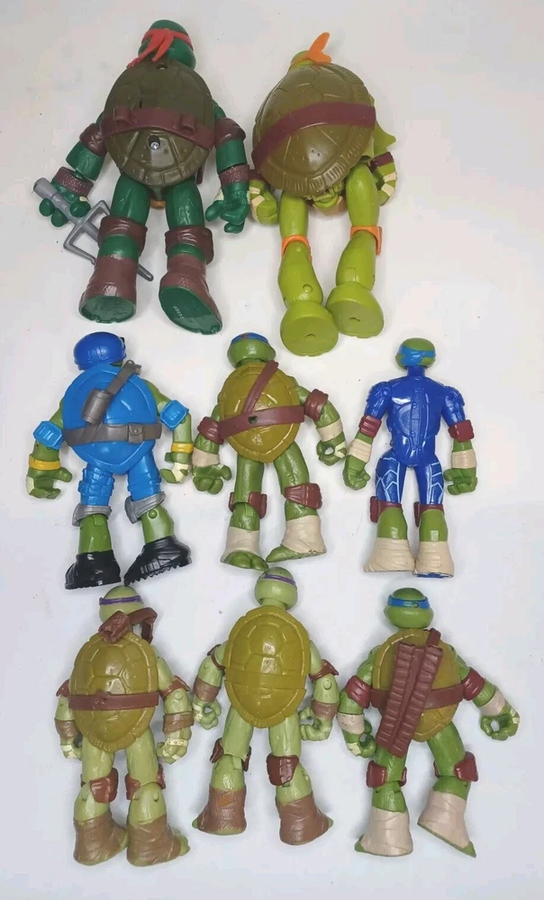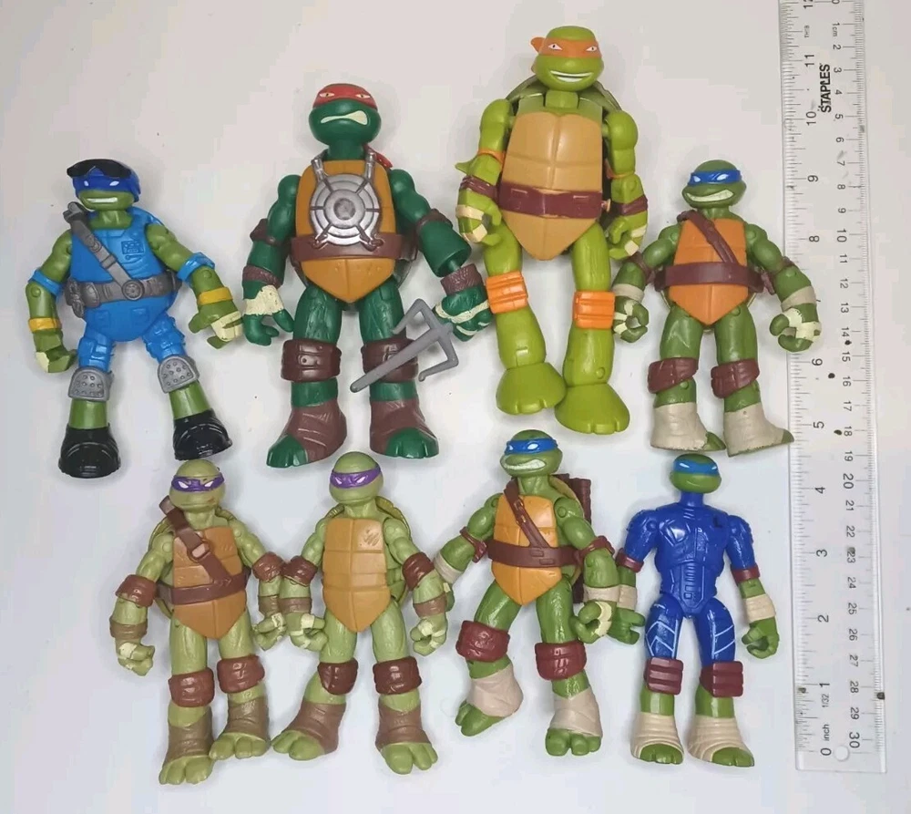 Get ready to add a unique and exciting piece to your collection with this set of 8 used loose figures with wear as shown in good condition Teenage Mutant Ninja Turtles Mutations and Figures! This set includes Leonardo, Raphael, Donatello, and Michelangelo, each with one extra hand piece and made of durable ABS Plastic. The detailed characters come straight from Nickelodeon's Animation Studio and are a licensed reproduction of the popular franchise. In addition to being a perfect addition to any TMNT fan's collection, these action figures are perfect for imaginative play or display. The colorful multicolor design is eye-catching and sure to be a conversation starter. Don't miss your chance to own a piece of the Teenage Mutant Ninja Turtles legacy!One with batteries not tested.And broken strap on one.