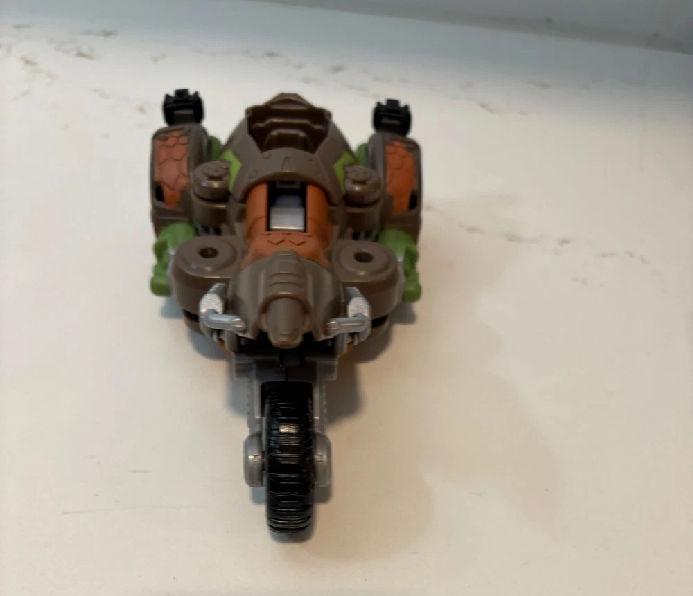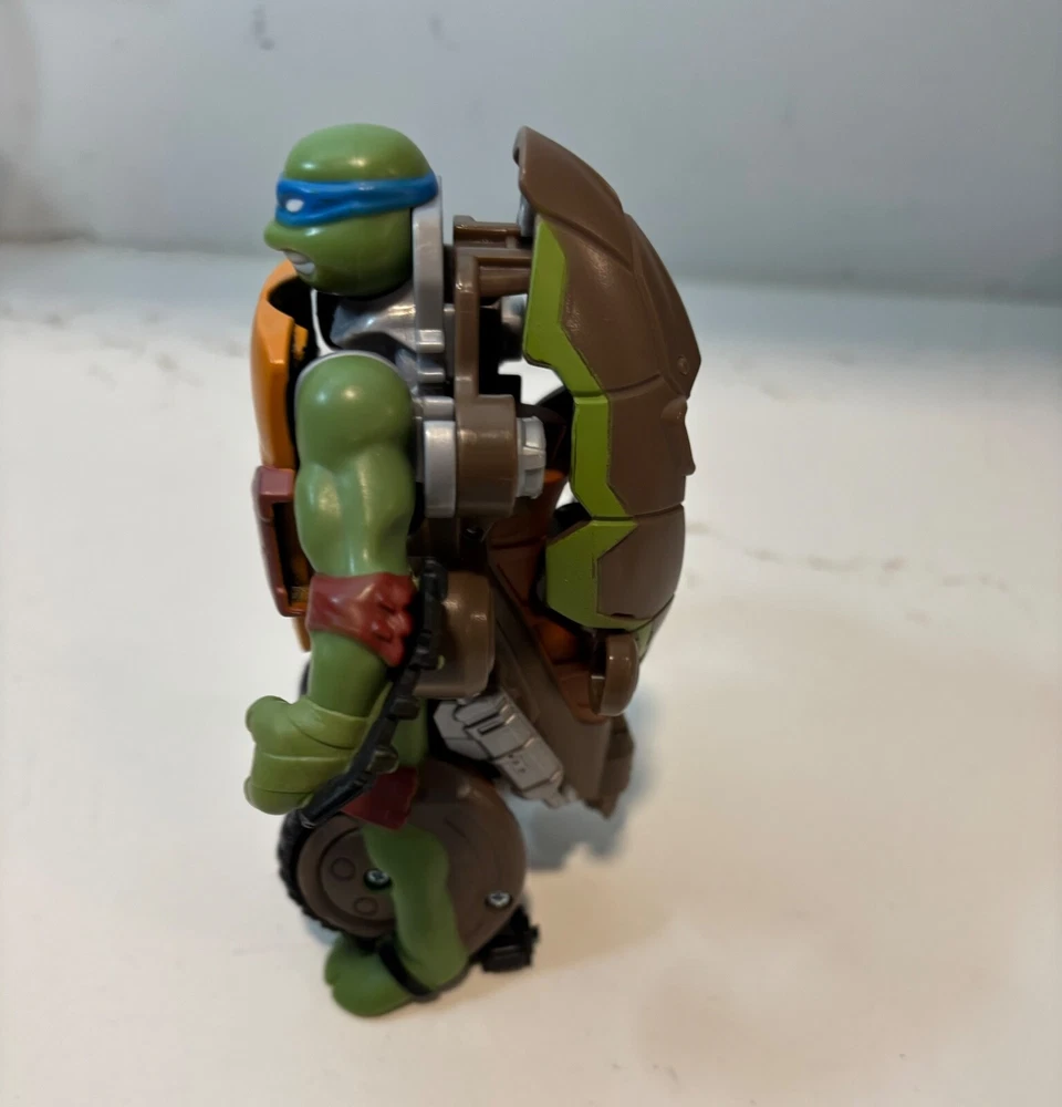 Has scratches, mostly on the shell of his belly. Good condition over. Transforms with no issues. This action figure is a must-have for any Teenage Mutant Ninja Turtles fan. The TMNT Teenage Mutant Ninja Turtles Mutations Twist N Mutate Leonardo AT3 Vehicle is an original, licensed reproduction from Playmates Toys. This 6-inch plastic figure features Leonardo, one of the four famous ninja turtles, in a transforming motorbike vehicle. The figure is based on the popular TV show and movie franchise, and is perfect for collectors and kids alike. With its multicolor design and intricate details, this action figure is sure to provide hours of imaginative play. Don't miss out on the chance to add this unique piece to your collection!