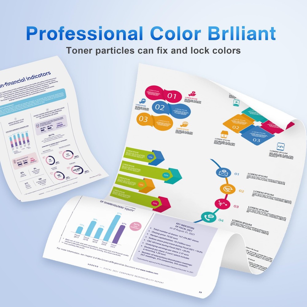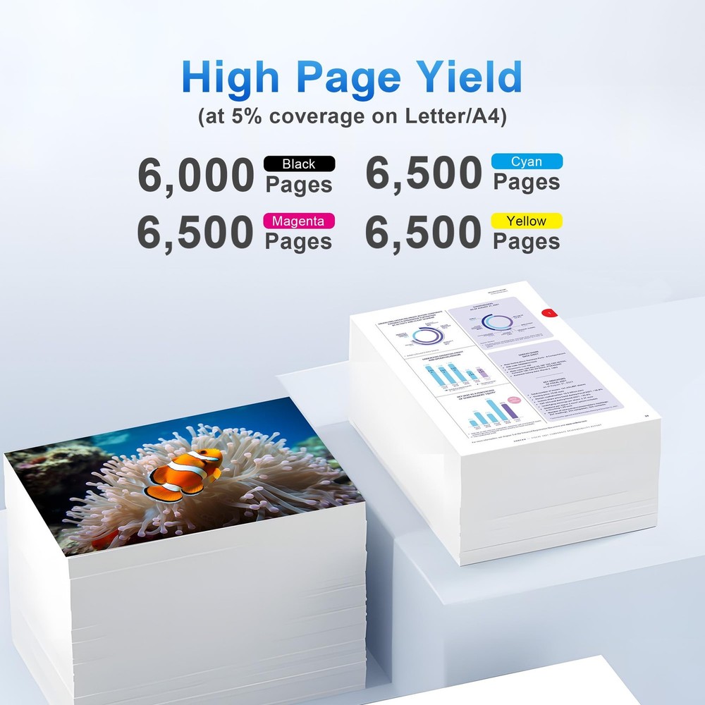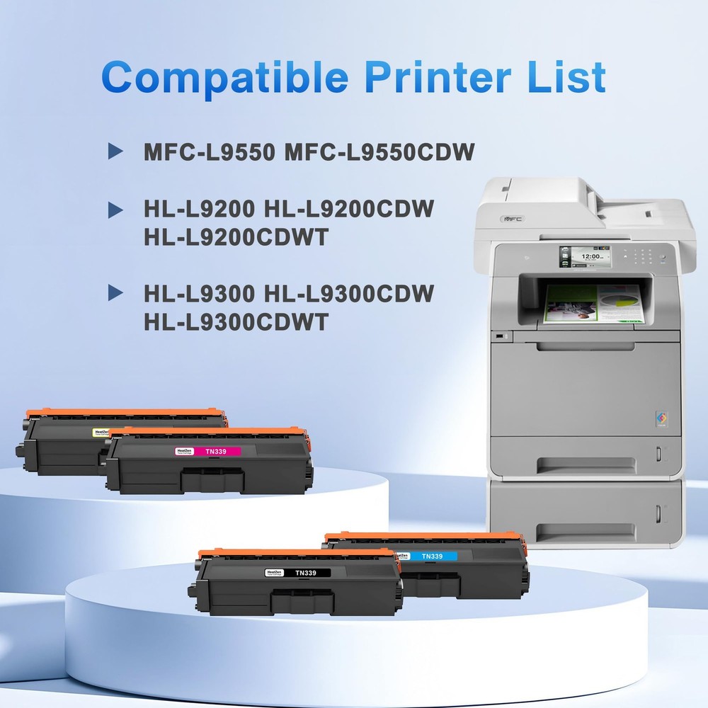 Ensure reliable and cost-effective printing with the TN339 High Yield Toner Cartridge Replacement. Compatible for Brother MFC-L9550 MFC-L9550CDW HL-L9200 HL-L9200CDW HL-L9200CDWT HL-L9300 HL-L9300CDW HL-L9300CDWT Printer, this high-yield TN339 toner cartridge delivers sharp, professional-quality text and graphics. Designed to meet the demanding needs of busy offices, it offers an impressive page yield of up to 6,000 pages per TN339 black cartridge and 6,500 pages per TN339 color cartridge. With its easy installation and consistent performance, this replacement TN339 toner cartridge ensures uninterrupted productivity and minimizes downtime. Enjoy crisp, vibrant output and exceptional value for your printing needs with the TN339 High Yield Toner Cartridge Replacement. Compatible Printer List: Our TN339 toner cartridge designed replacement for Brother MFC-L9550 MFC-L9550CDW HL-L9200 HL-L9200CDW HL-L9200CDWT HL-L9300 HL-L9300CDW HL-L9300CDWT printer, ensuring perfect alignment and functionality to keep office printers running smoothly, please confirm your printer model before placing the order. Package Contains: 4 Pack TN339 toner cartridge replacement for Brother TN339BK TN339C TN339M TN339Y toner cartridges (1x TN-339BK black, 1x TN-339C cyan, 1x TN-339Y yellow, 1x TN-339M magenta), these TN339 toner cartridges offer excellent value and cost-effective toner cartridges, worth your choice! High Pages Yield: Up to 6,000 pages per TN339 black toner cartridge & up to 6,000 pages per TN339C TN339Y TN339M color toner cartridge at 5% coverage on letter/ A4, reducing the need for frequent replacements and enhancing productivity in high-demand printing environments. Premium Quality Assurance: The TN339 toner cartridges are crafted from top-grade materials and are certified with ISO-9001, ISO-14001, STMC, CE, and ROHS standards. This guarantees exceptional print quality, delivering vibrant colors, sharp lines, and crisp text to meet your printing needs. Wide Application: Our TN339 toner cartridges meet your daily printing needs and can be used in various environments, such as home, school, office, bank, and more. After-Sales Guarantee: If you have any questions regarding the TN339 toner cartridges, please feel free to contact us. We have a professional team ready to assist you and ensure you have a satisfactory shopping experience.