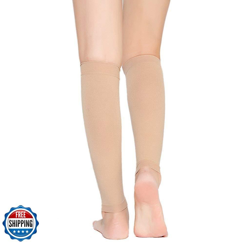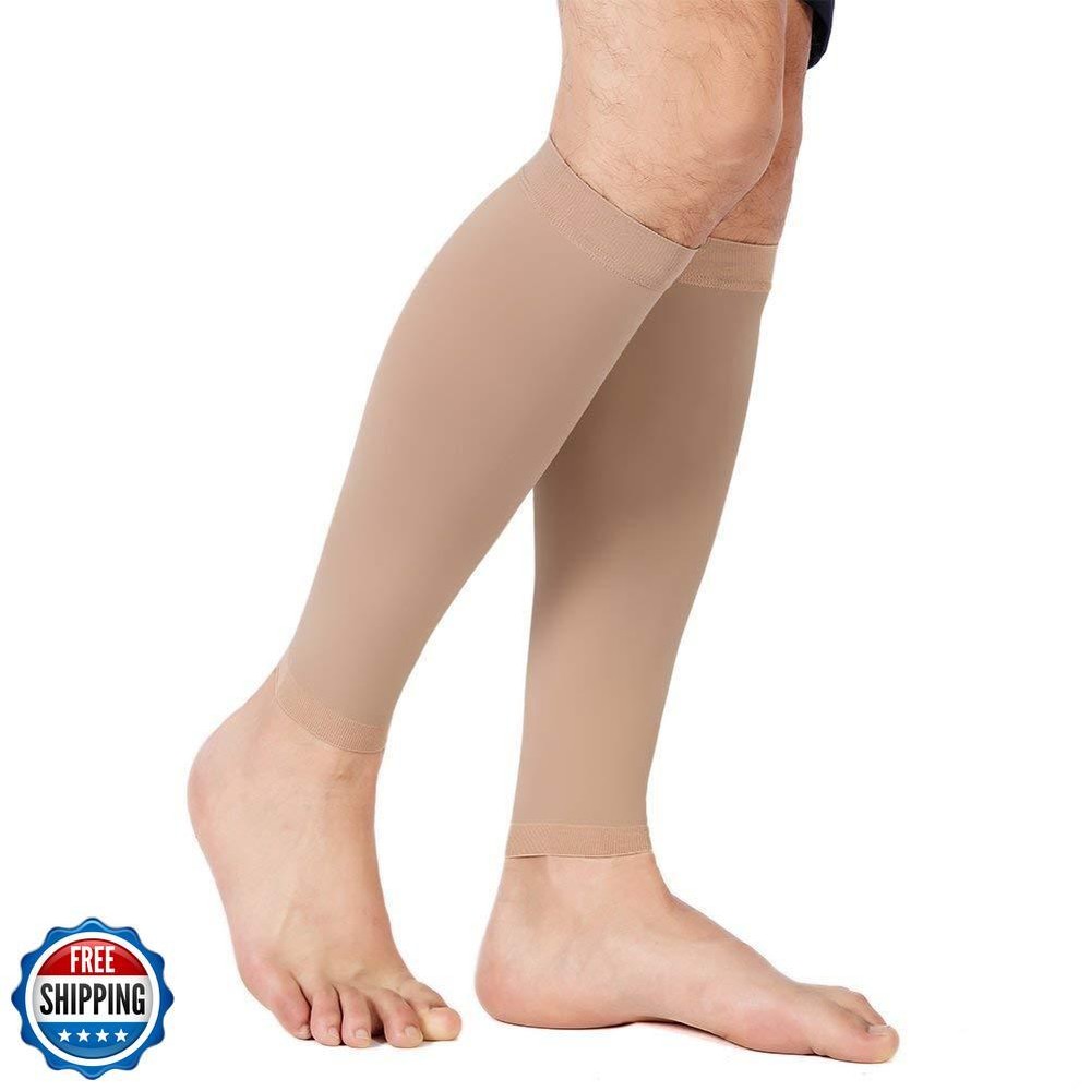 TOFLY® Calf Compression Sleeve for Men and Women, 1 Pair, Footless Compression Socks 20-30mmHg for Leg Support, Shin Splint, Pain Relief, Swelling, Varicose Veins, Maternity, Nursing, Short Beige 4XL Features GET PERFECT FIT ACCORDING TO SIZE CHART: Measure the thickest part of your calf then compare to the size chart of left images to get the perfect fit. They include size Small, Medium, Large, X-Large, 2X-Large, 3X-Large, 4X-Large, 5X-Large and painstakingly measured to ensure an exact fit. So whether or not you already have other calf sleeves, please try ours this time, as we provide "BUY 100% RISK FREE" Service, so why not to see whether these are better for you? IT JUST WORKS, TRY PLEASE! -DURABLE & COMFORTABLE: TOFLY compression calf sleeves are made of premium quality material, Nylon 77%, Spandex 23%, lightweight, breathable & durable, sweat-absorbent, anti-slip. True graduated compression of 20 - 30 mmHg (CLASS II), with seamless woven construction, these fit snug with no loss of compression after long time wear. IT JUST WORKS, TRY PLEASE! -RELIEF & RECOVER FAST: By improving blood flowing & circulation, TOFLY compression hose help to prevent the ankle & leg swelling, reduce muscle cramping while re-energizing tired legs. These footless compression hose also help reduce the risk of developing varicose veins, DVT, leg cramps, arthritis, shin splints, pulled muscle, tendonitis, lymphedema, ease muscle soreness as well as leg fatigue. IT JUST WORKS, TRY PLEASE! -GREAT FOR DAILY USE: These compression sleeves could be used during pregnancy, or whatever your sports might be, running, hiking, martial arts, volleyball, basketball, cycling, baseball, yoga, workouts or any fitness activities. Or for people in retail, air travel, jobs as a nurse or in construction that require long standing on your feet, even to cover up tattoos! BUY WITHOUT ANY RISK: Please feel free to contact us whether you have any problem here. And any question will be answered within 12 hours! We are so confident you will like our Calf Compression Sleeve since we know they do WORKS! Doctors, nurses, teachers, flight attendants, salesmen, policeman and the elder can benefit from our Compression Sleeve. Choose us, choose healthy and comfort! Shipping Free & Fast Shipping: We offer free shipping to most of the USA with a normal delivery time of 3-7 days. However, due to the current situation, additional delivery time (up to 3 weeks) may be required for some items. Alternative Carriers: We may use alternative carriers (e.g., USPS, FedEx, UPS) to ensure your package arrives safely and on time. Due to the use of multiple carriers, we are unable to provide a tracking number automatically. Handling Time: Orders are processed and shipped within 1-2 business days of receiving cleared payment. Shipping Restrictions: Shipping to Alaska, Hawaii, Puerto Rico, Guam, and other US territories may incur shipping charges or delivery restrictions. Please contact us before ordering, or your order can be refunded/cancelled. State Restrictions: Certain items may not be shipped to California due to state regulations. Contact for Tracking Updates: If you require tracking updates or have any concerns about the delivery of your order, please feel free to contact us, and we will be happy to assist you. Return Policy 30-Day Hassle-Free Returns: If you are not completely satisfied with your purchase, you can return the item for free within 30 days of receiving it for a full refund or exchange. Easy Return Process: Contact us, and we will provide you with a prepaid return shipping label and detailed instructions. No Restocking Fee: There are no restocking fees for returns. However, the buyer is responsible for return shipping costs if the return is not due to a seller"s error. Refund Processing: Refunds will be processed within 1 business day of receiving the returned item in its original condition. Feedback Your feedback is extremely important to us. We strive to provide the best products and customer service possible. If you are satisfied with your purchase, please take a moment to leave us a positive review. If you have any concerns or issues with your order, please contact us before leaving negative feedback. We are committed to resolving any problems and ensuring your satisfaction. Contact Us If you have any questions or concerns, please feel free to reach out to our customer support team. You can contact us through the eBay messaging system. We are available Monday to Friday, 9:00 am to 5:00 pm EST, and we will do our best to respond to your inquiry within 24 hours. Thank you for supporting our small family business!