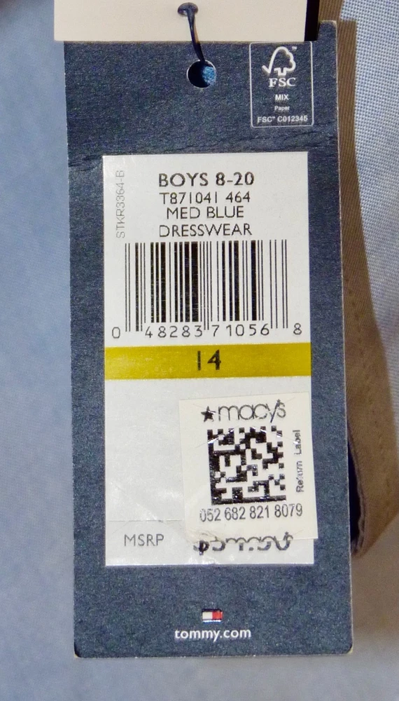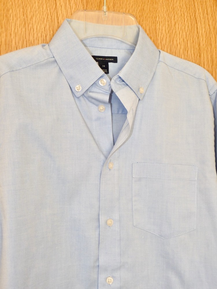 This great NEW shirt, boy s’ size 14, is from Tommy Hilfiger. It is the “ Boys’ Oxford Long Sleeve Dress Shirt, Collared Button-Down with Chest Pocket, Regular Fit” and the fabric is an easy-care cotton/poly blend. Here’s the catalog description: A CLASSIC STAPLE: Featuring a button-down style, collar, and a stylish front chest pocket, our Oxford Long Sleeve Dress Shirt is a classic boys' wardrobe staple that has been especially tailored with a rich cotton blend for an exceptional fit. PREMIUM QUALITY: We use high-quality materials in all our kids' clothing to ensure maximum comfort, longevity, and lasting power. Made from 60% Cotton and 40% Polyester. SIZE GUIDE: Fits true to size. CARE INSTRUCTIONS: Machine wash. TOMMY HILFIGER: As one of the world’s most recognized premium designer lifestyle brands and internationally recognized for celebrating the essence of classic American cool style featuring preppy with a twist, Tommy Hilfiger is focused on designing and marketing high-quality apparel and is dedicated to the living spirit of the American dream. Measurements for this size 14 are: chest-35”, length-25”, sleeve length-29”. This classic shirt retails for $35; I’m happy to answer any questions.