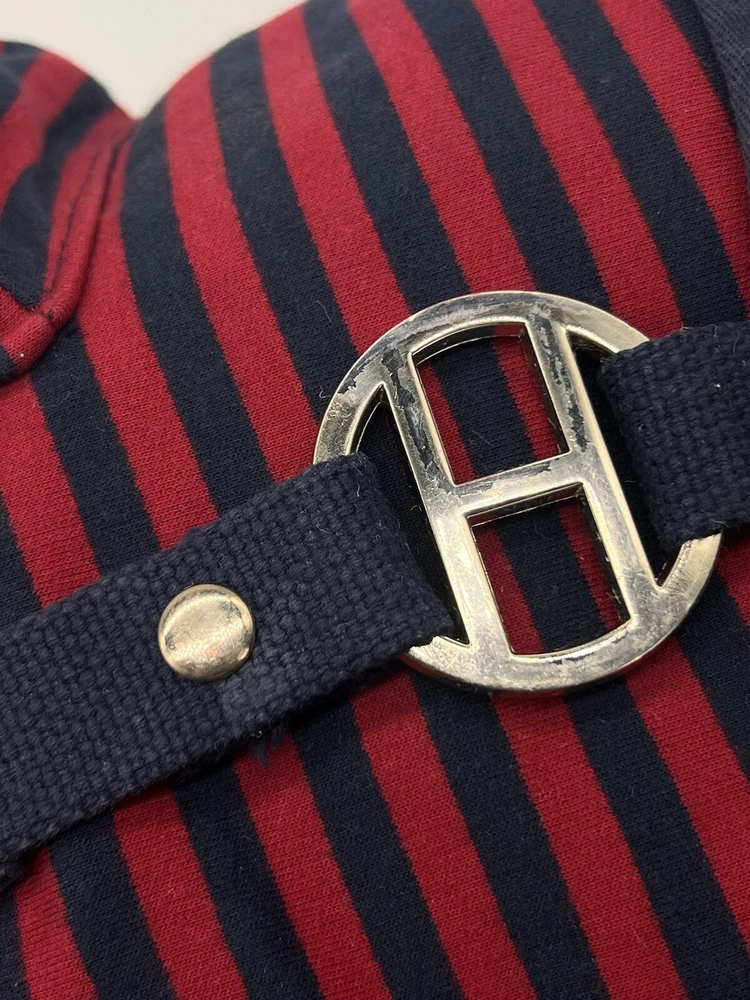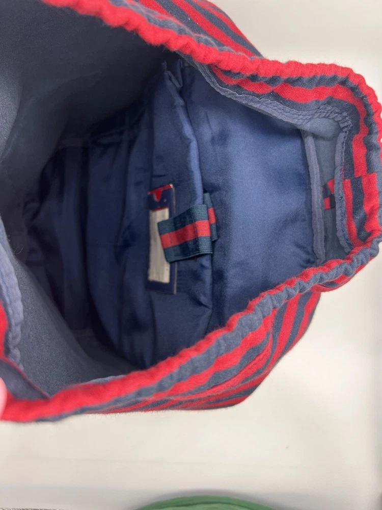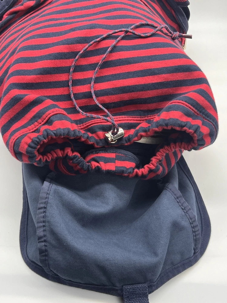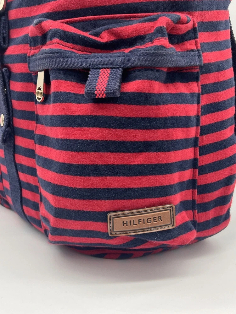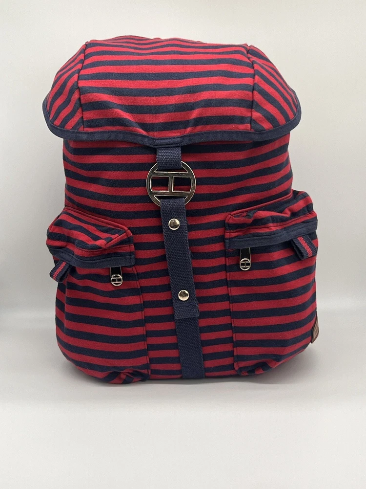 This TOMMY HILFIGER backpack bag is a must-have for anyone looking for a stylish and functional accessory. Made of durable polyester, nylon, and canvas materials, this large-sized bag features a drawstring and snap closure, with adjustable straps for a comfortable fit. The bag comes in a striking blue and red striped pattern, with a Y2K, 90s, retro, and preppy theme that is perfect for travel, casual outings, or workwear. The bag has several features, including outer pockets, laptop sleeve/protection, lightweight and packable design, and a lined interior with silver tone hardware material. It also has a laptop pocket and is suitable for unisex adults. Whether you're looking for a vintage or modern backpack, this TOMMY HILFIGER bag is a perfect choice. Note: Item is clean and measures appropriately 18” H x 14.5” W x 5.5”D. There is a small nick on the ID window and some scratches/ wear on the hardwear; shown in photos! Thank you for stopping by!