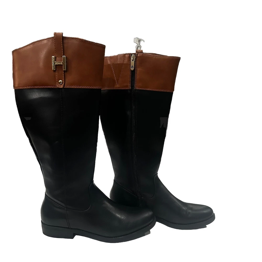 Honestly, I am not sure these boots have ever been worn, but I will not mark them as brand new if I cannot fully guarantee they are in fact NEW. But I'm pretty sure they are new. LOL These are great looking riding boots. If you are afraid of buying boots bc the calf is too tight, THESE are your boots. Product Information Zip-up your seasonal style wearing the faux-leather Tommy Hilfiger® Shyenne 3 boot! Round-toe silhouette with a soft textile lining and a lightly padded footbed. Stacked heel and a man-made outsole. Imported. Product measurements were taken using size 8.5, w WIDE calf area. Measurements: Heel Height: 1 in Weight: 1 lb Circumference: 15 in Shaft: 16 in