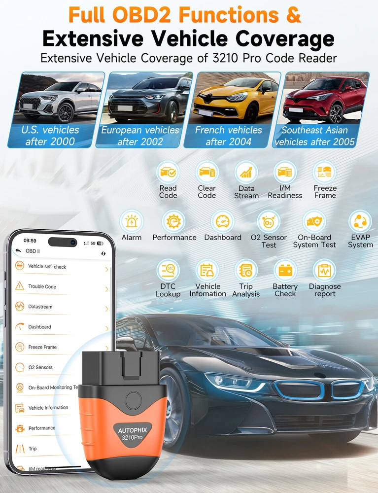 This TOPDON TopScan OBD2 Scanner is a professional diagnostic tool that provides all system diagnostics and OBD2 full functions. It has eight reset functions, including oil reset, EPB reset, throttle adaptation, steering angle reset, BMS reset, DPF regeneration, ABS bleeding, and SRS reset. The tool features bi-directional control, check engine light shut off, freeze frame displays, and multi-language interface. It also supports all OBDII, CAN, and EOBD vehicles and is compatible with Android and iOS devices through the TopScan and TopGuru apps. The package includes a user guide and a 1-year warranty.