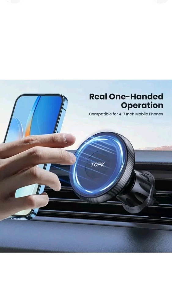 Keep your phone secure and hands-free while driving with this TOPK Mag-Safe Car Mount. This magnetic phone car mount phone holder for cars air vent is compatible with universal and Apple iPhone 13 Pro Max. It has a black color and is made of plastic material. The mounting type is magnet and the fastening is magnetic. It features a holder and magnetic material that ensures your phone stays in place while driving. This car phone holder is perfect for those who want to keep their hands on the wheel and avoid distractions while driving.